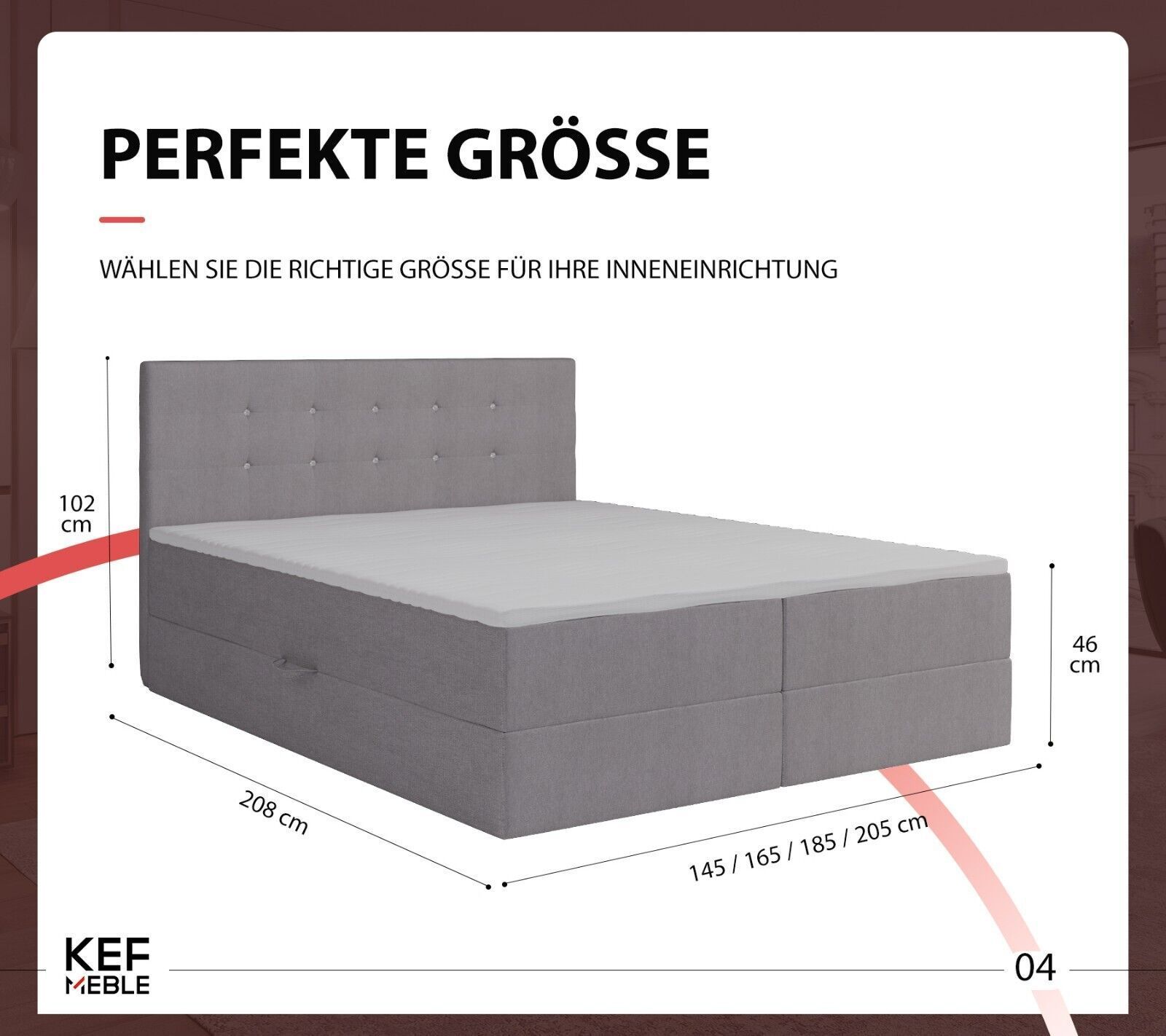 140x200 cm, 160x200 cm, 180x200 cm und 200x200 cm
