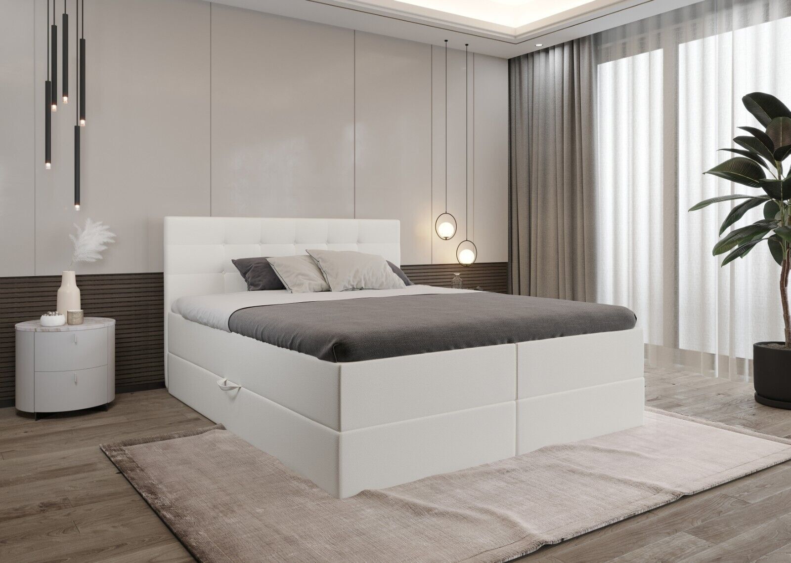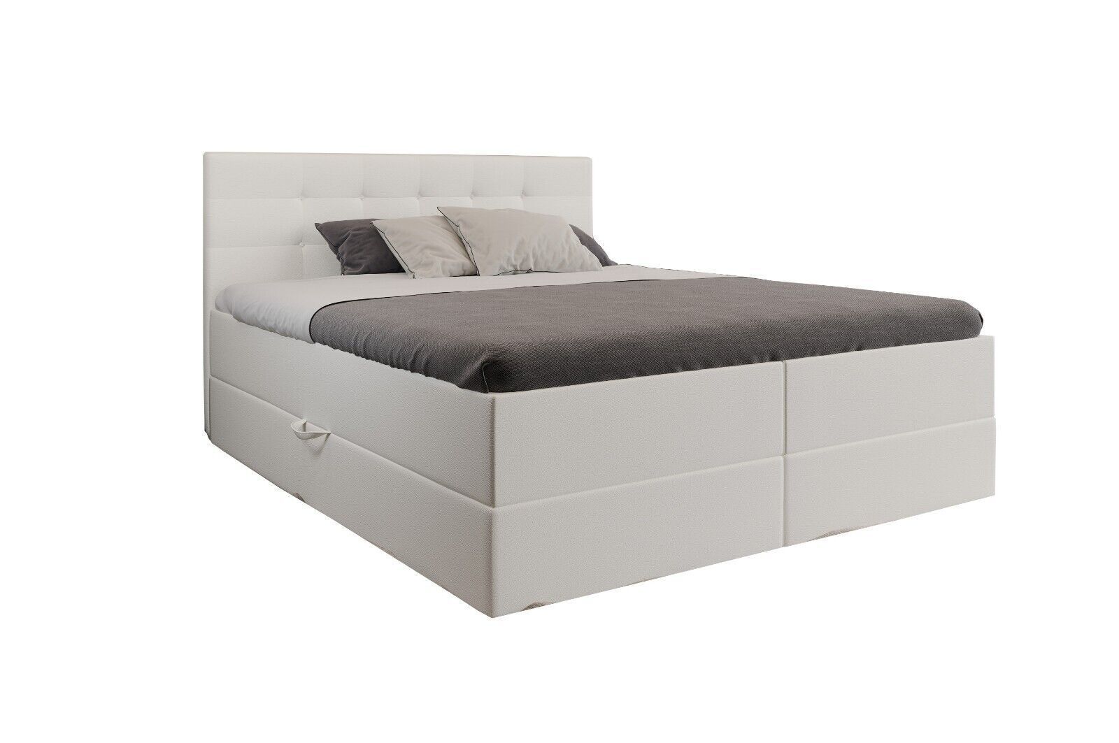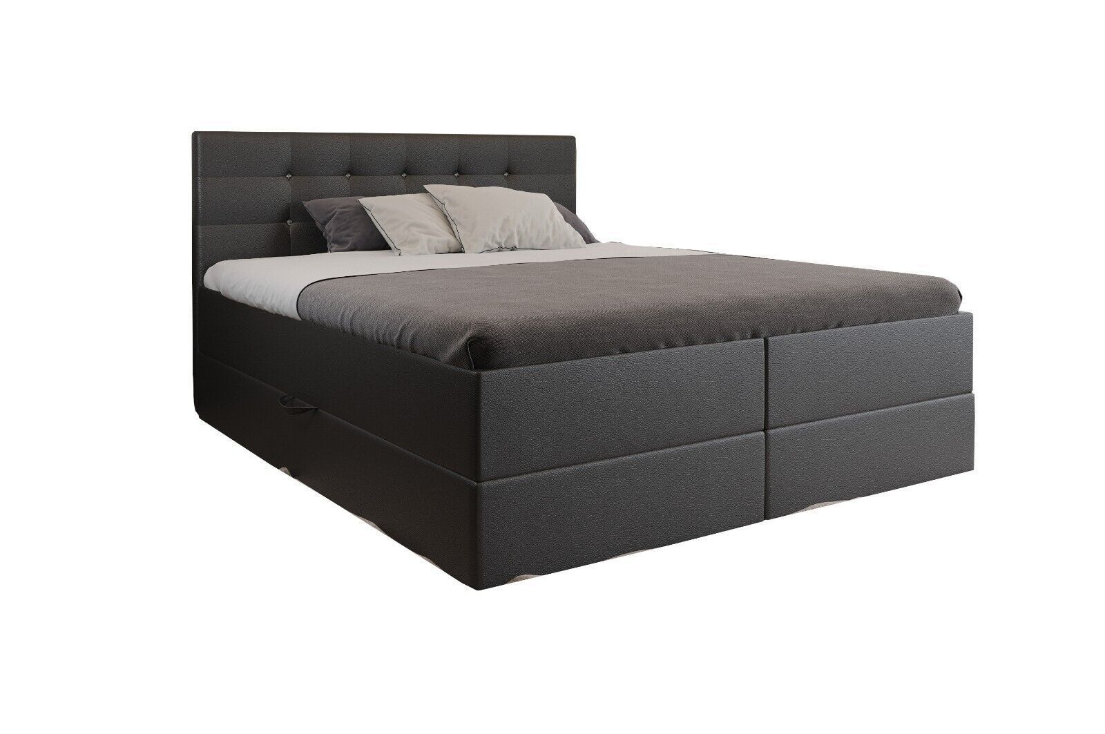 MENU Unsere angebote Bewertungen Kontakt hohe Qualität kostenlose Lieferung attraktive Preise modernes Design Malaga Boxspringbett - Bett mit Matratze und Topper - Doppelbett mit Bettkasten - Polsterbett mit Kopfstütze - Bonell-Matratze H3 EuroAbmessungen: Liegefläche: 140 160 180 200 x 200 cm Höhe