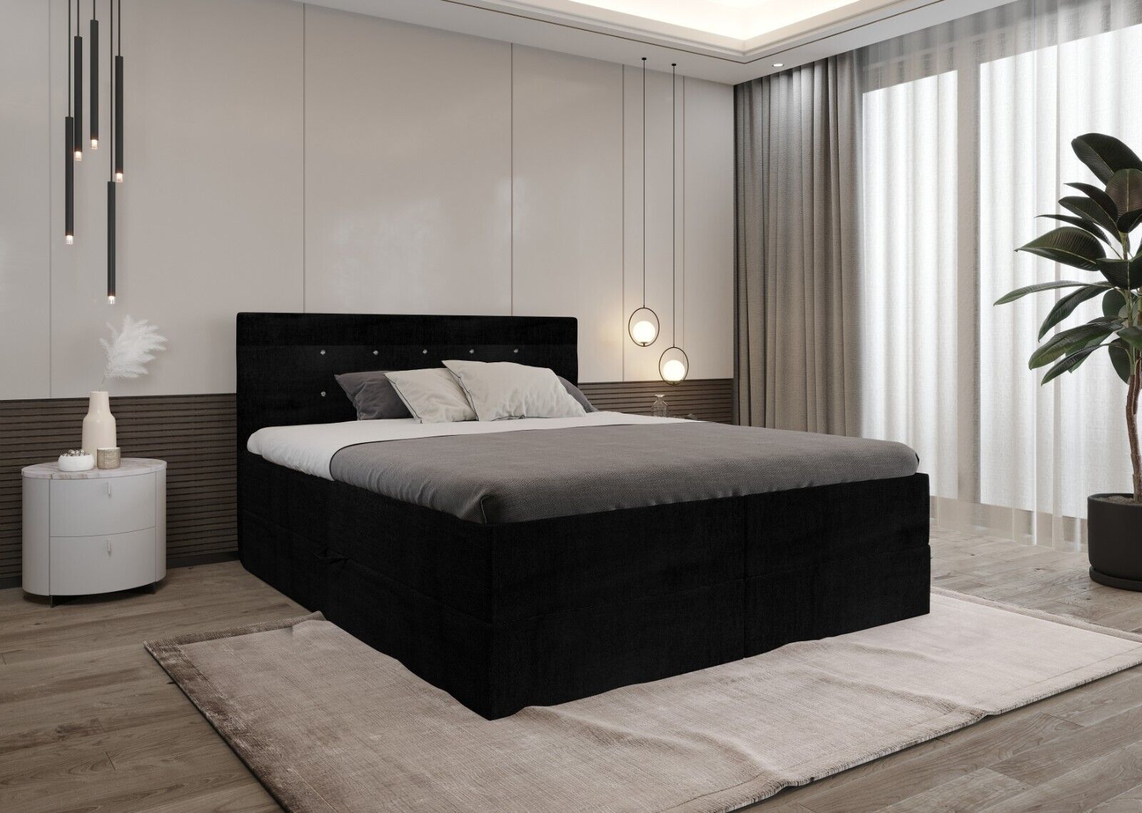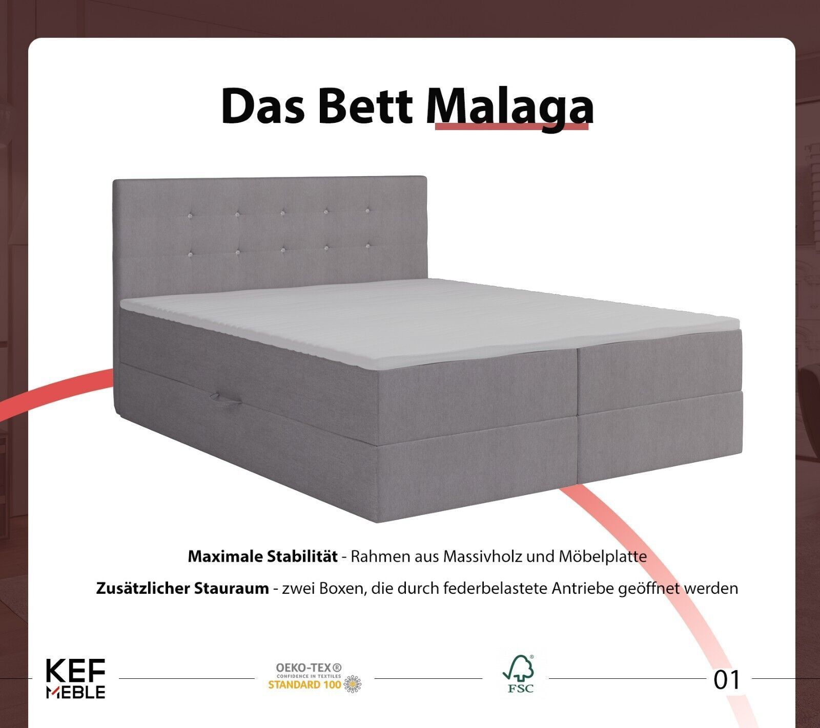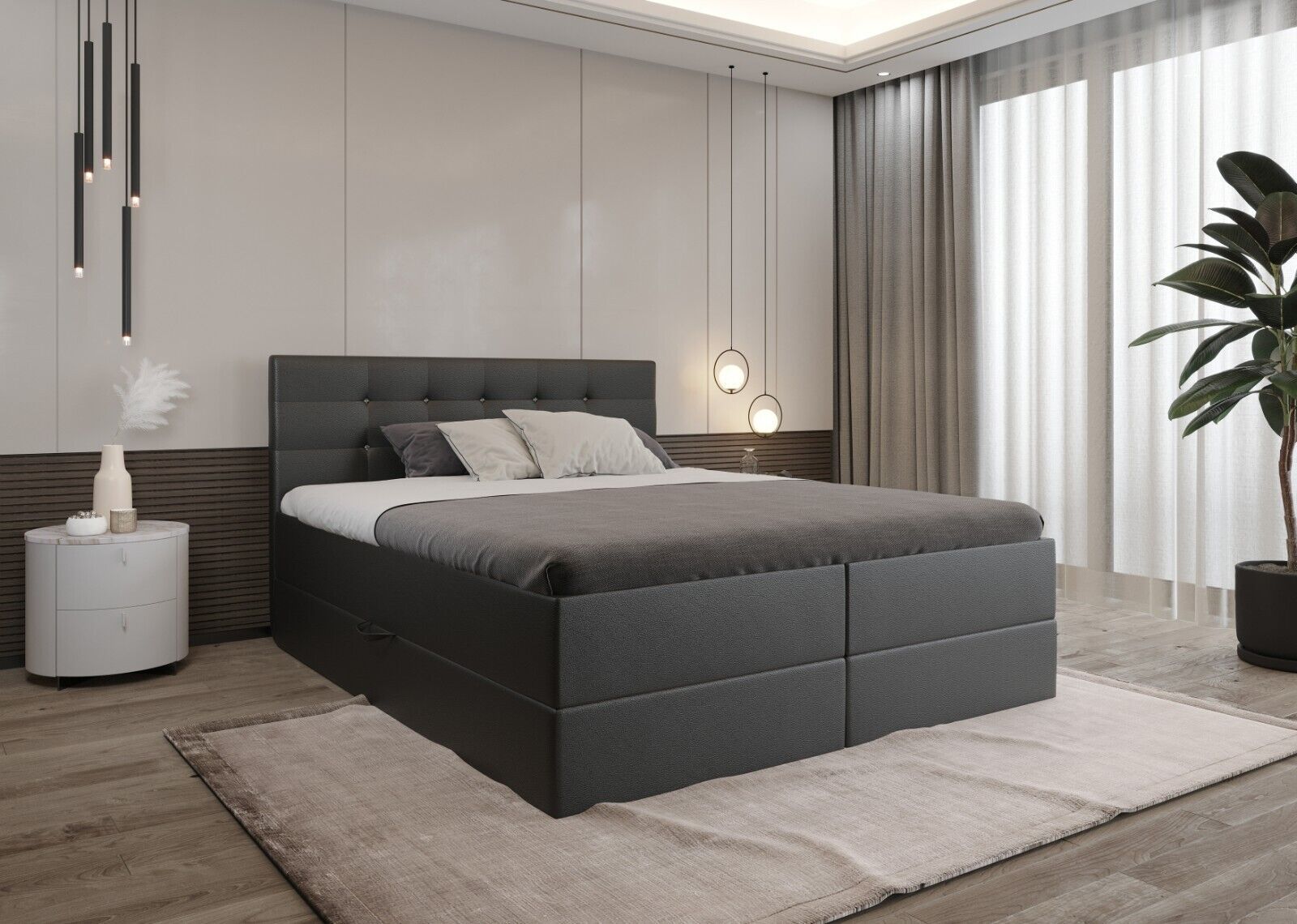 MENU Unsere angebote Bewertungen Kontakt hohe Qualität kostenlose Lieferung attraktive Preise modernes Design Malaga Boxspringbett - Bett mit Matratze und Topper - Doppelbett mit Bettkasten - Polsterbett mit Kopfstütze - Bonell-Matratze H3 EuroAbmessungen: Liegefläche: 140 160 180 200 x 200 cm Höhe