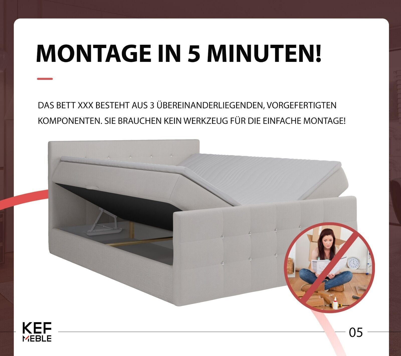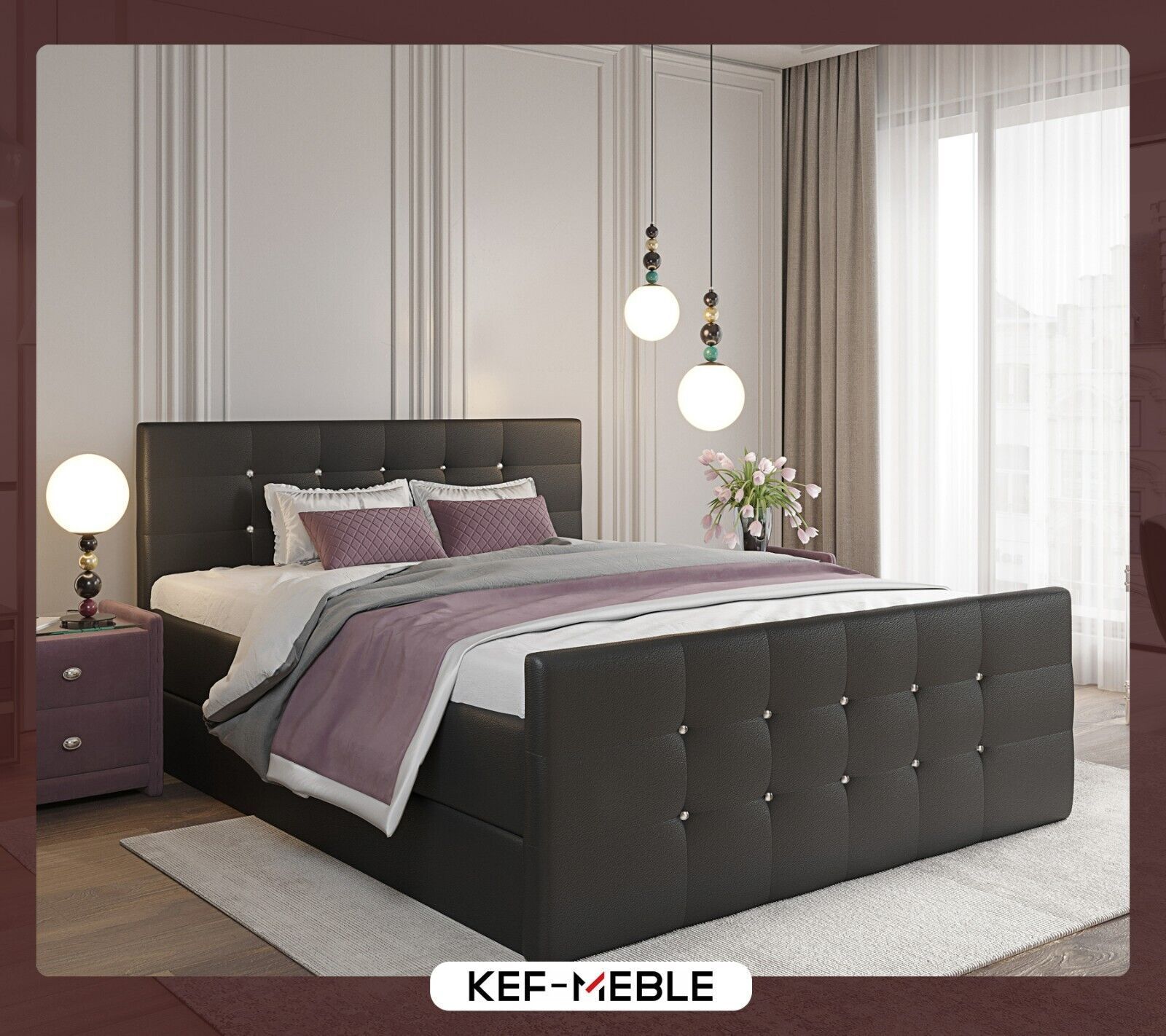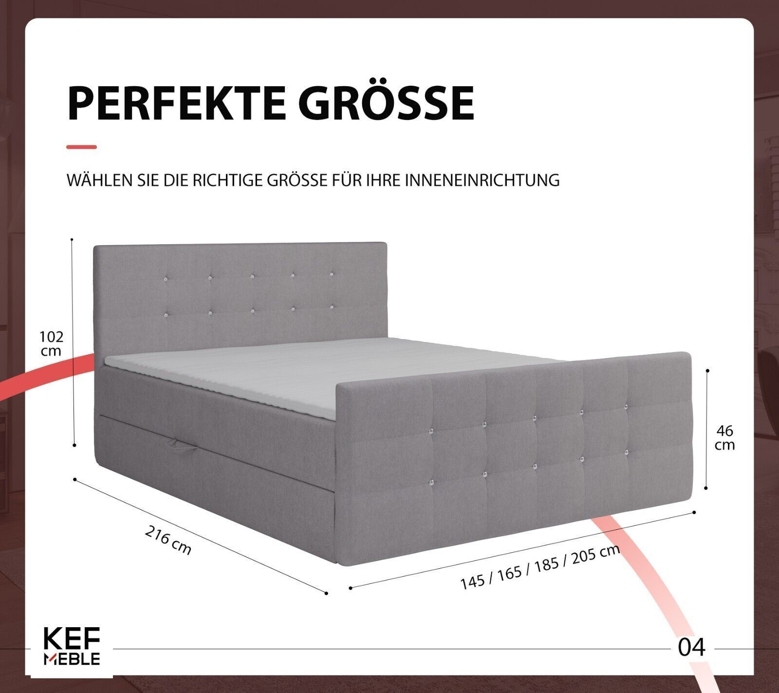 KEF-MEBLE Paris Boxspringbett - Bett mit Matratze und Topper - Doppelbett