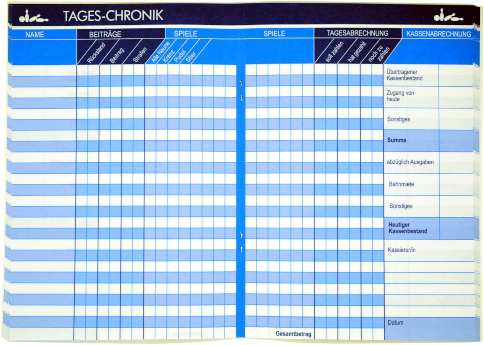 Kegelbuch DIN A5 104 farbige Innenseiten Kegeln Chronik Kassenabrechnung