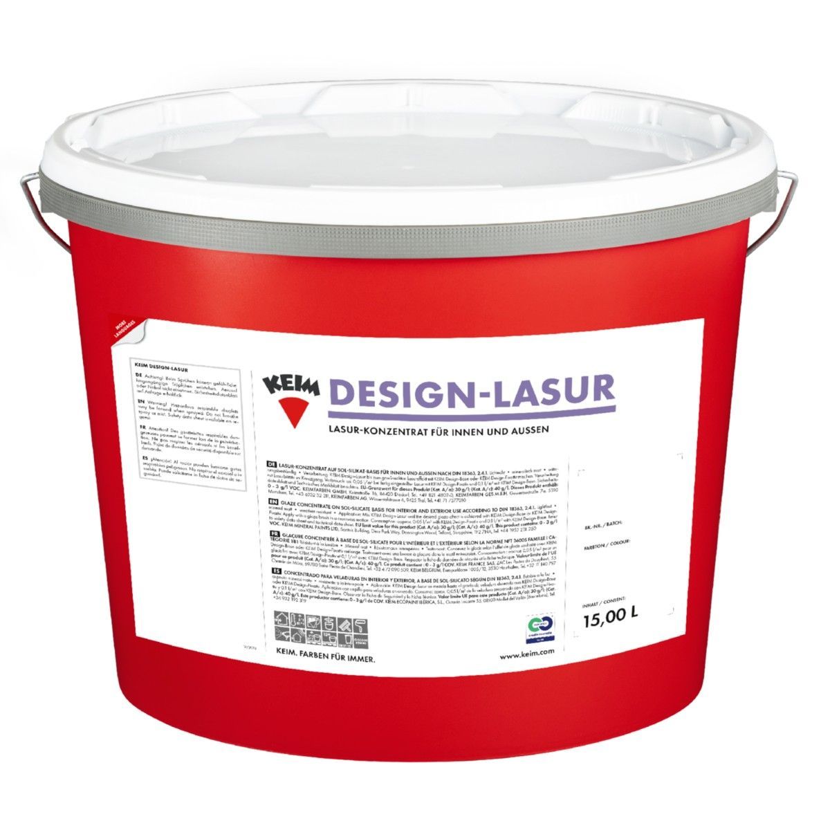 KEIM Design-Lasur 1 Liter Details für KEIM Design-Lasur 1 Liter: Anwendungsfertiges Lasur-Konzentrat auf Sol-Silikatbasis nach DIN EN1062-1 für den Innen- und Außenbereich. Für dekorative Lasurbeschichtungen und zur Veredelung von herkömmlichen Deckanstrichen. Hervorragend geeignet für eindrucksvoll