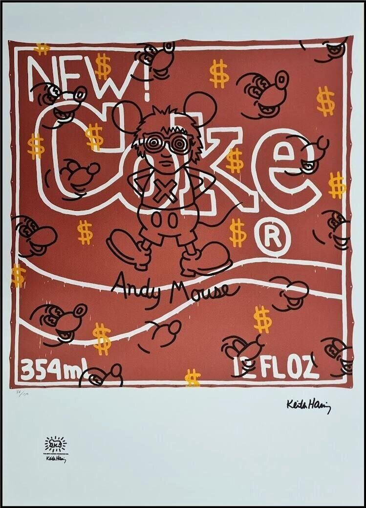 KEITH HARING * Andy Mouse - New Coke * signed lithograph * limited # 86/150
