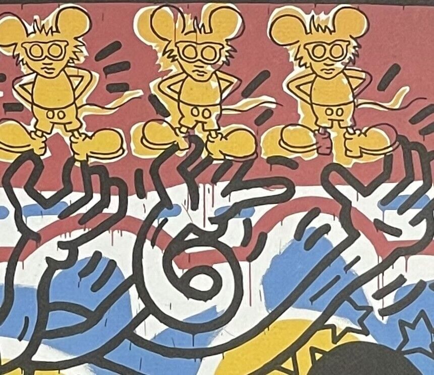 Lithographie Mickey Mouse In der Platte signiert und mit der Hand nummeriert Limitierte Auflage von 150 Stück Jedes Stück ist einzeln nummeriert 126 150 Gesamtgröße : 50 cm x 70 cm Nach dem Original von Keith Haring Das Blatt wird flach verschickt, nicht gerollt! Alle angebotenen Kunstprodukte werde