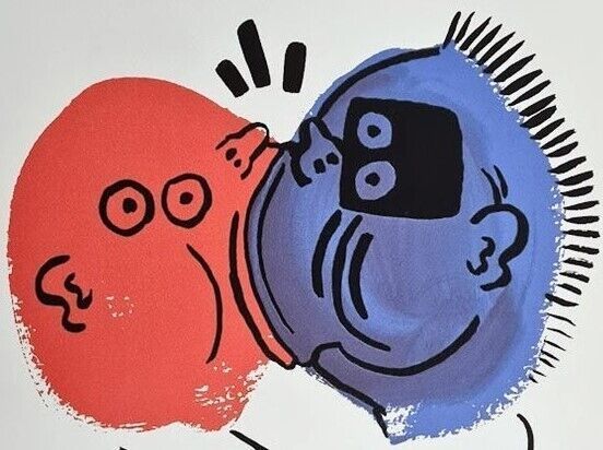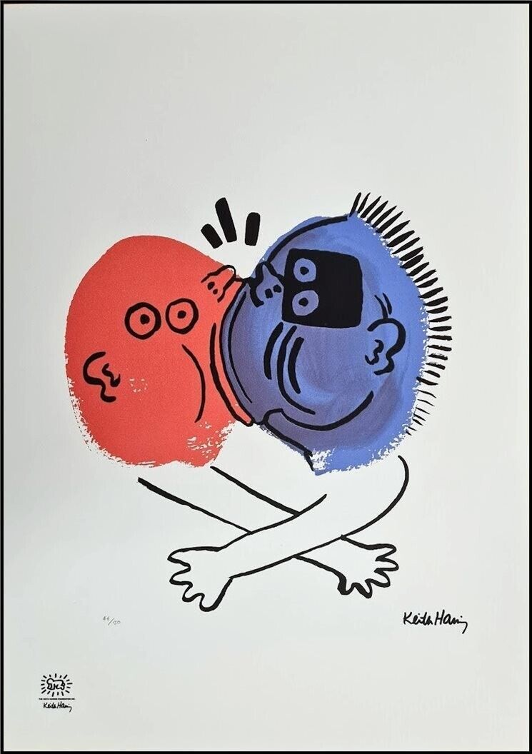 Lithographie Die Geschichte von Rot + Blau In der Platte signiert und mit der Hand nummeriert Limitierte Auflage von 150 Stück Jedes Stück ist einzeln nummeriert 46 150 Gesamtgröße : 50 cm x 70 cm Nach dem Original von Keith Haring Das Blatt wird flach verschickt, nicht gerollt! Alle angebotenen Kun