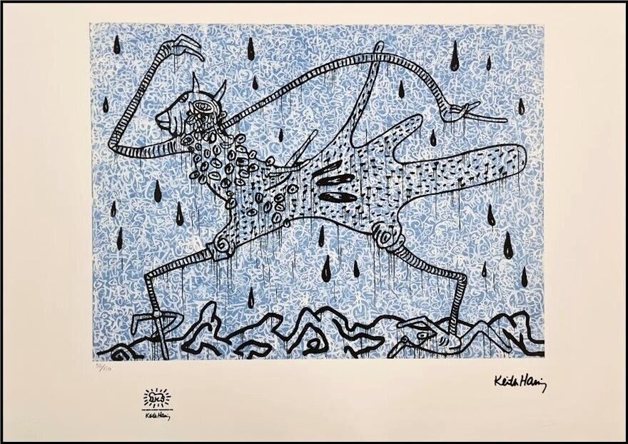 KEITH HARING * Walking in the Rain * signed lithograph * limited # 96/150