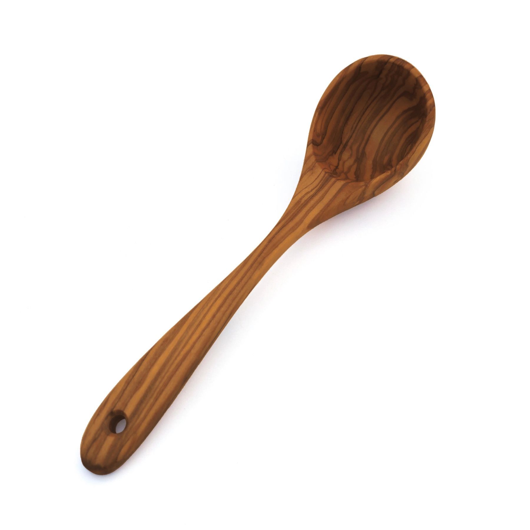 Kelle 26 32 cm Die Kelle ist aus Olivenholz und in Handarbeit angefertigt. Der künstlerisch begabte Handwerker hat jedes Stück einzeln per Hand hergestellt, was jedes Stück zu einem Unikat macht. Die einzigartige rötlich-braune Maserung mit einem unregelmäßigen Faserverlauf auf glatter Oberfläche ma