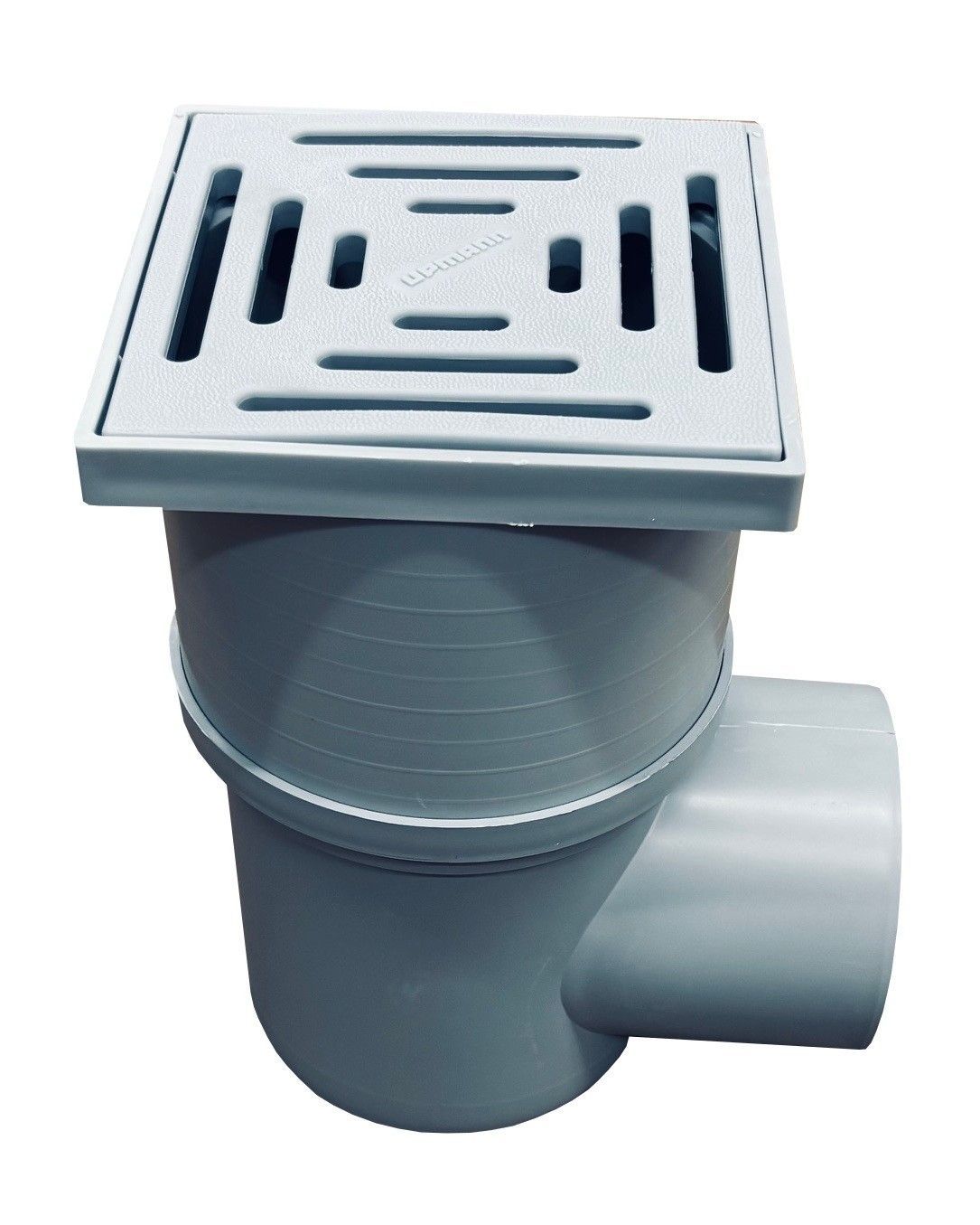 Upmann Kellerablauf 15 x 15 cm mit Aufsatzrahmen Abgang waagerecht DN 110, Kunststoffrost