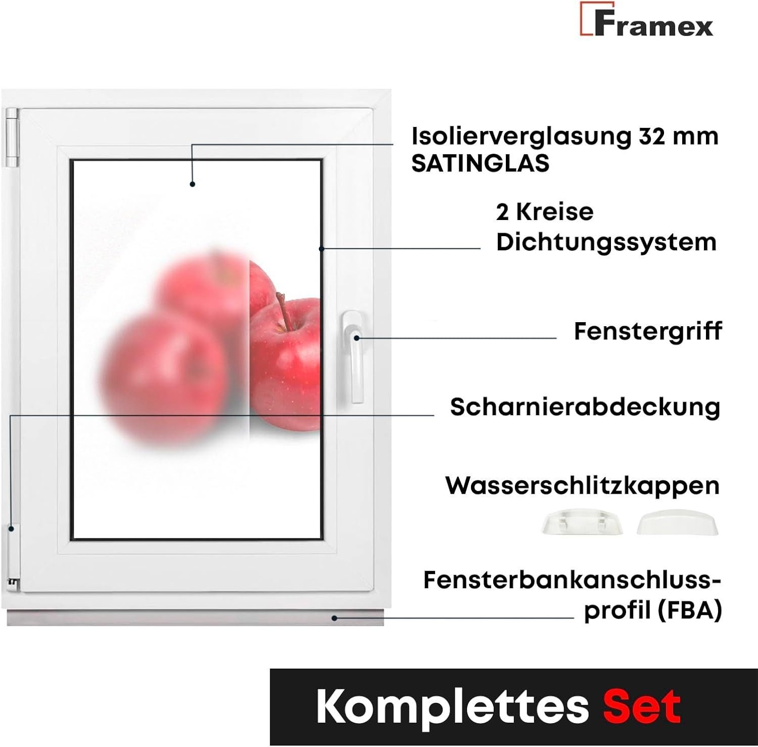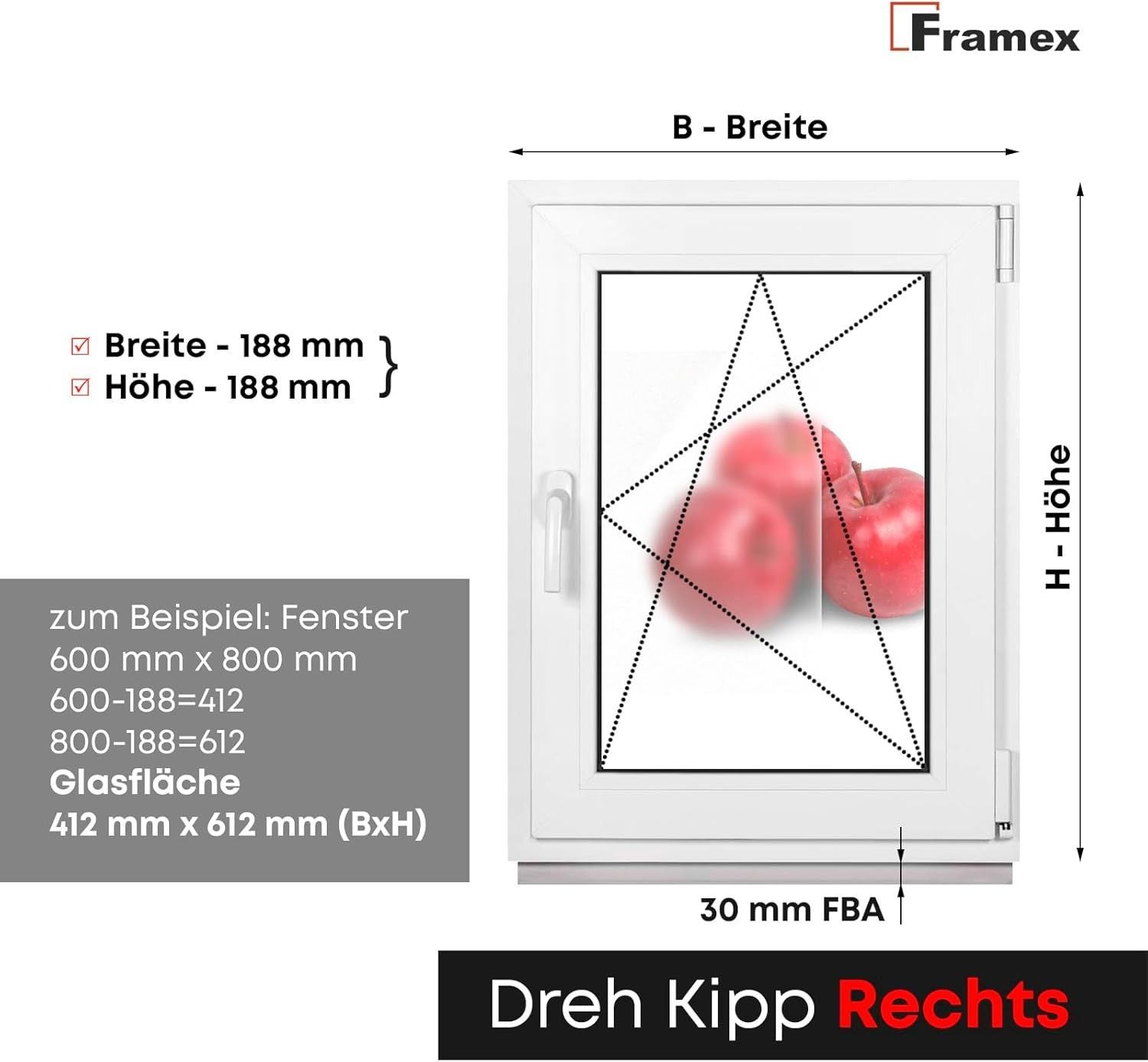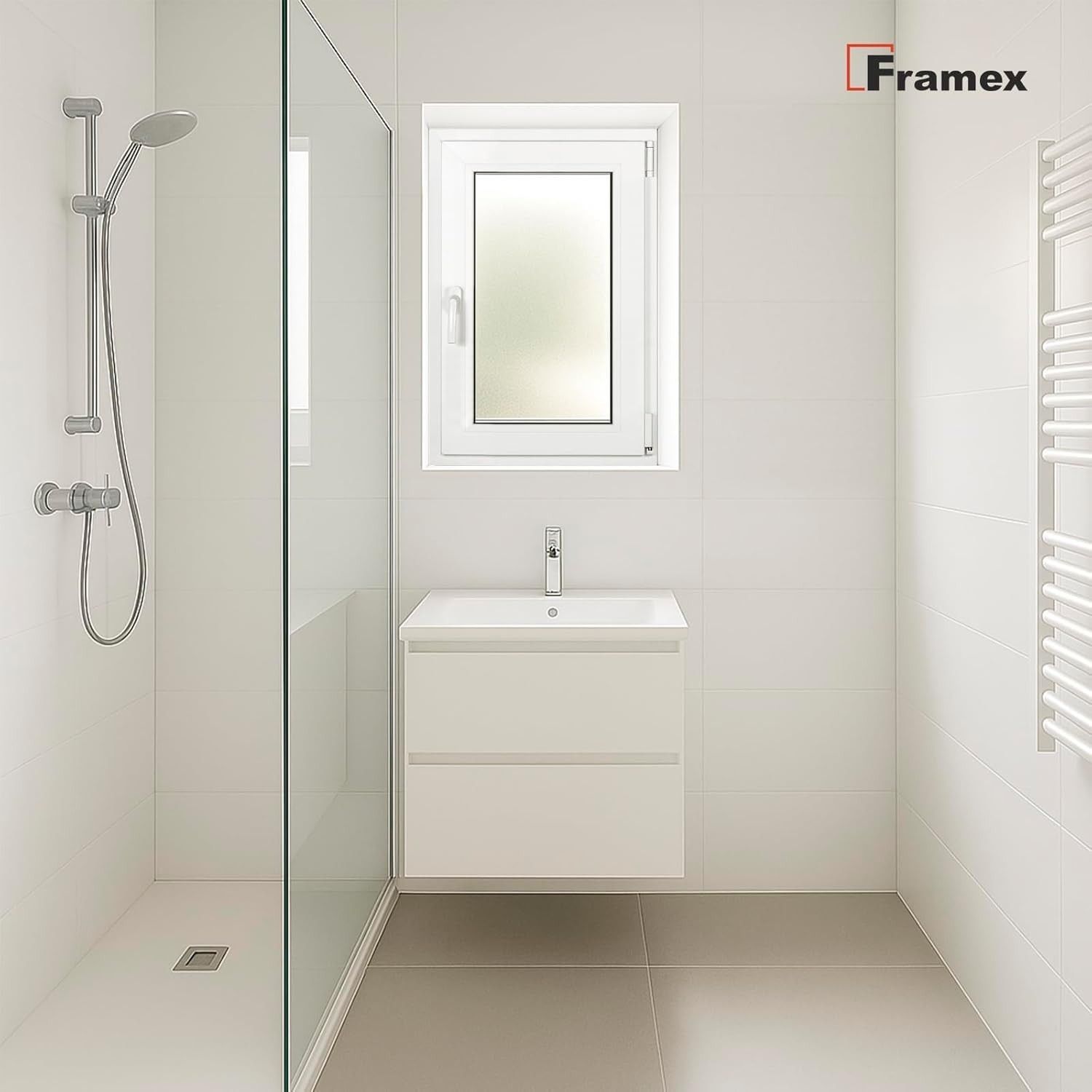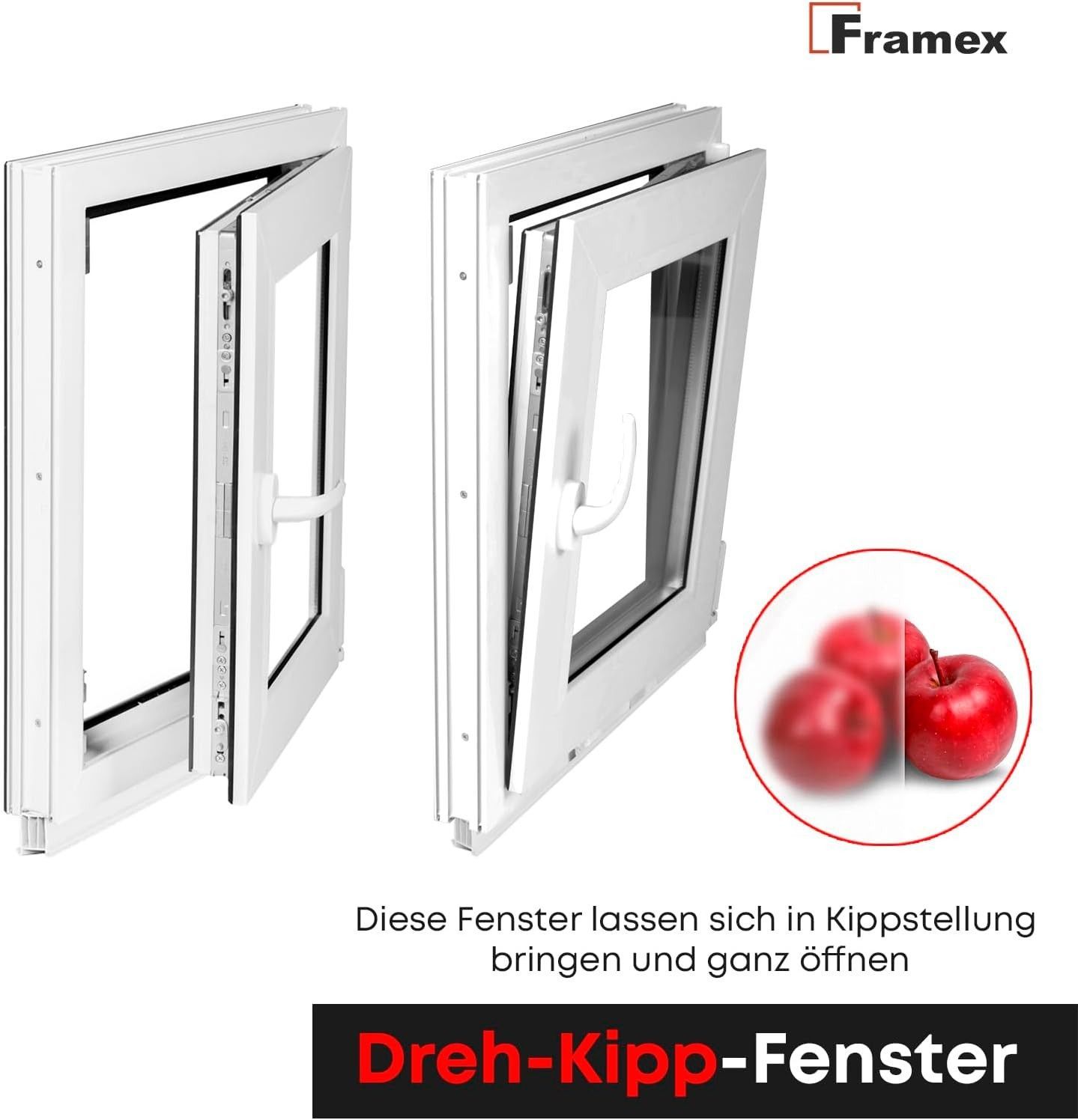 Framex Kellerfenster Fenster 2 Fach BxH 400x1200 mm Satinato Dreh-Kipp Weiß Premium