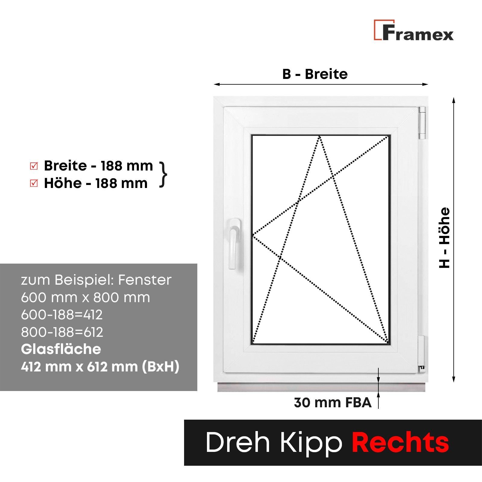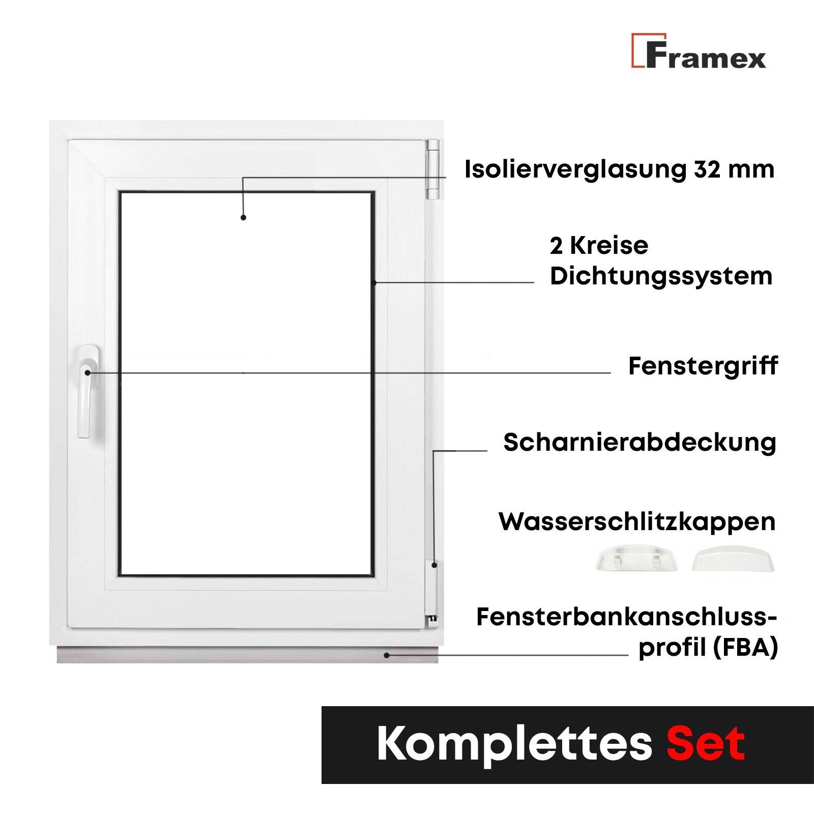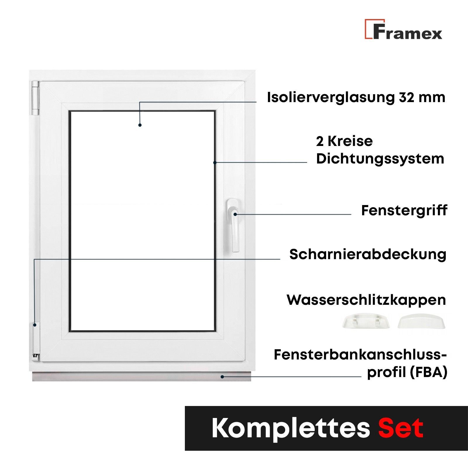 Framex Kellerfenster Fenster Kunststoff 2-fach, Größe 400-1200 mm (alle Größen), Weiß