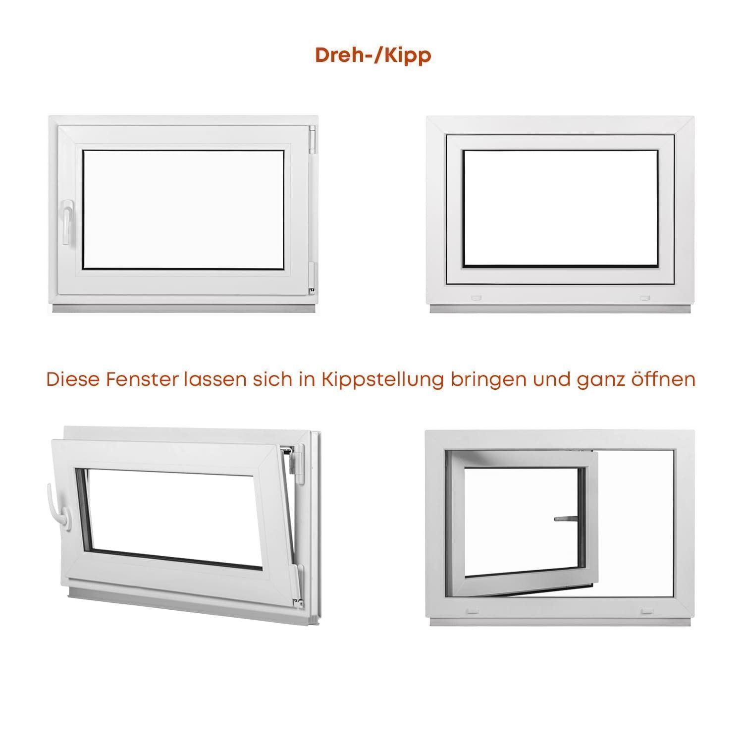 Kellerfenster Fenster Kunststoff - 3 fach - Dreh Kipp - Breite 40-55cm DIN Links