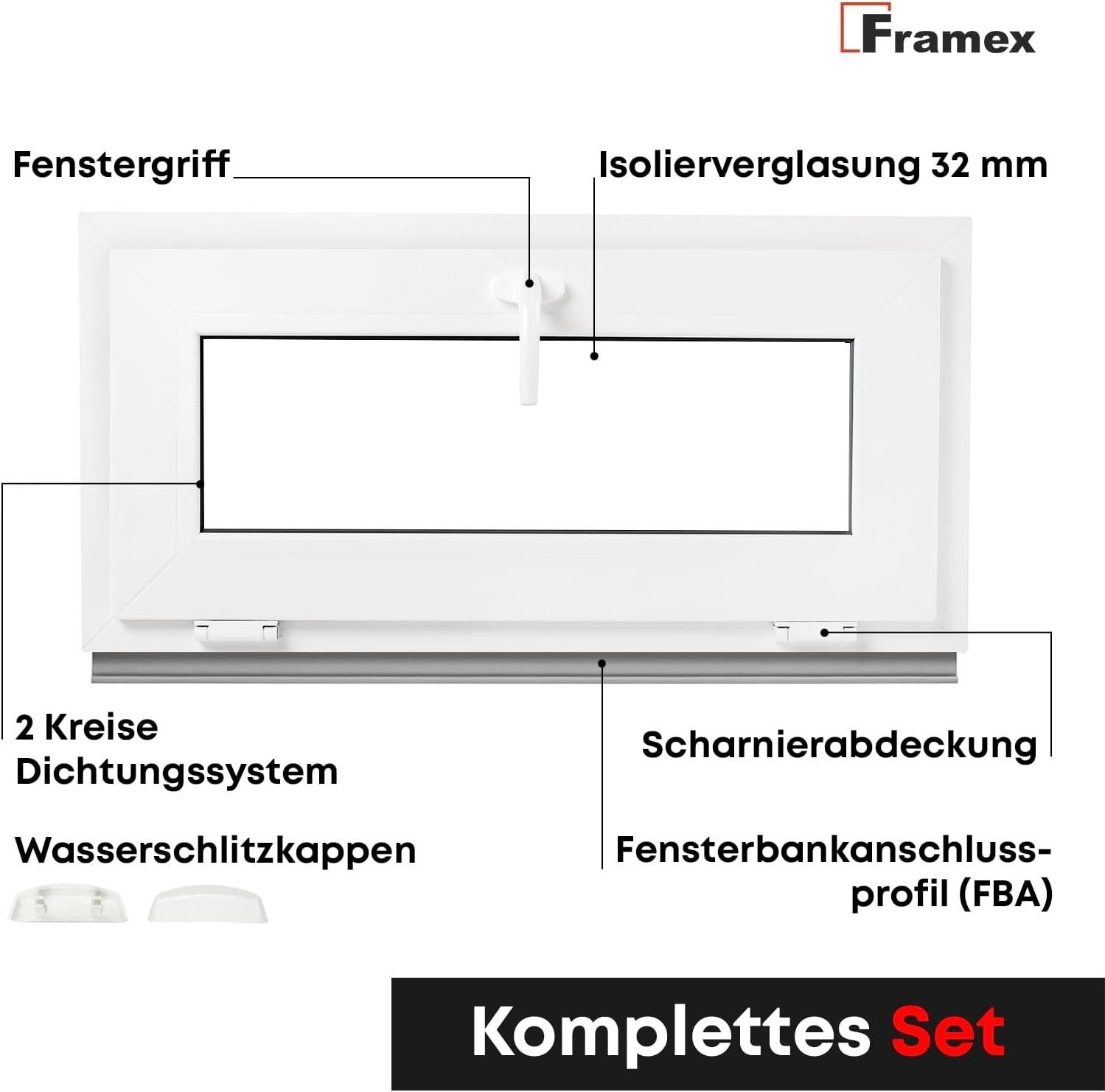 Fenstergriff+Wasserschlitzkappen+Fensterbankanschlussprofil