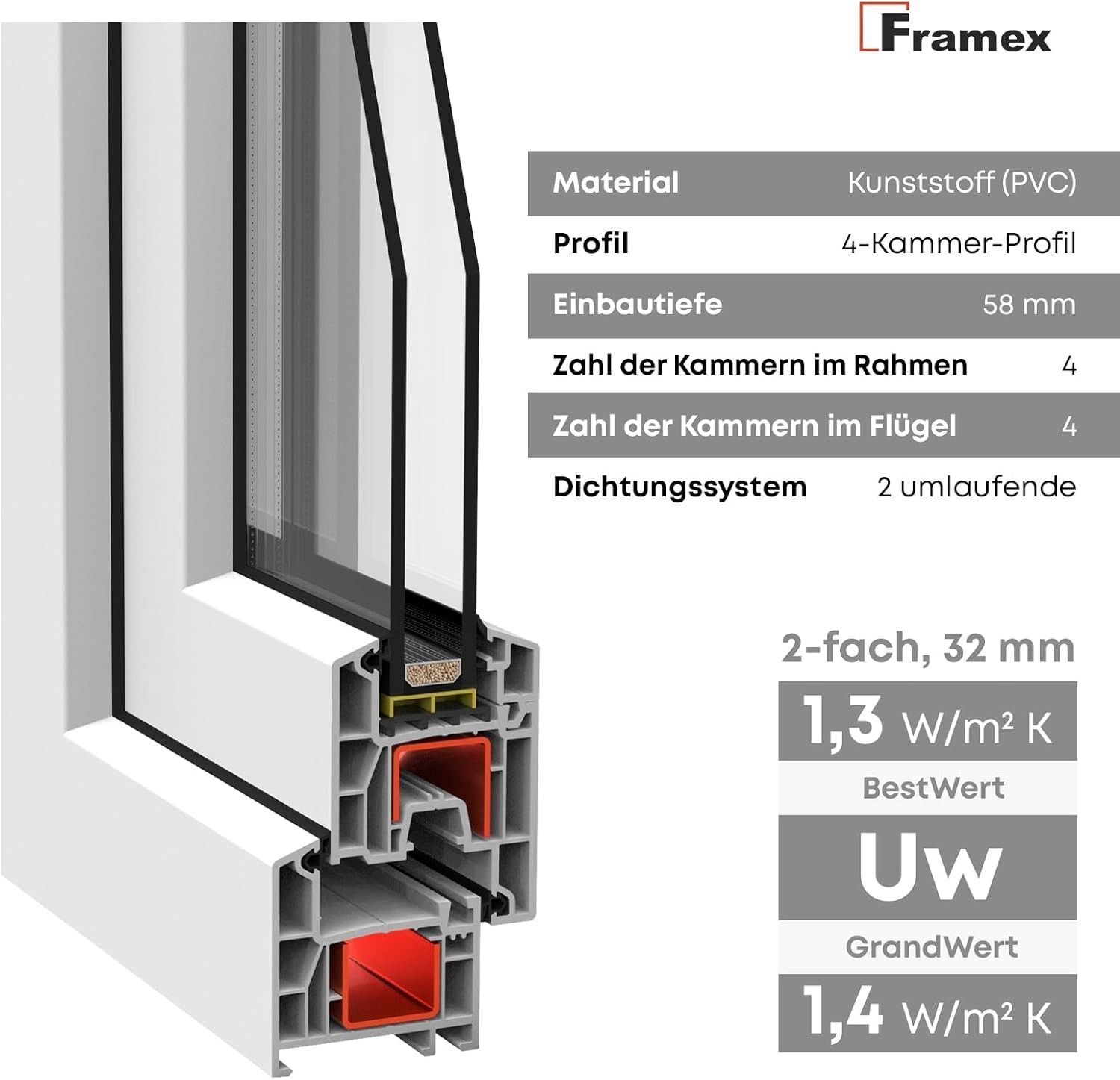 Framex Kellerfenster, Garagenfenster, 2-Fach, Kippfenster, Weiß Premium, Alle Größen