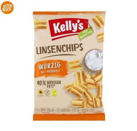 Kellys Kelly´s Chips Knabbergebäck würzige Linsenchips Meersalz Vegan Glutenfrei 90g