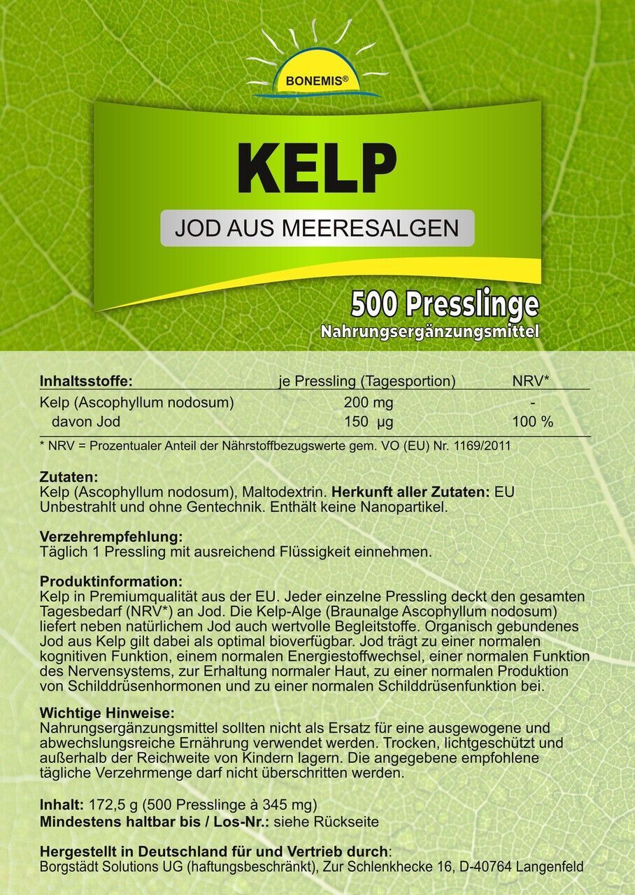 Kelp (Jod aus Meeresalgen), 500 Presslinge im Beutel. Herkunft: EU, Bonemis®