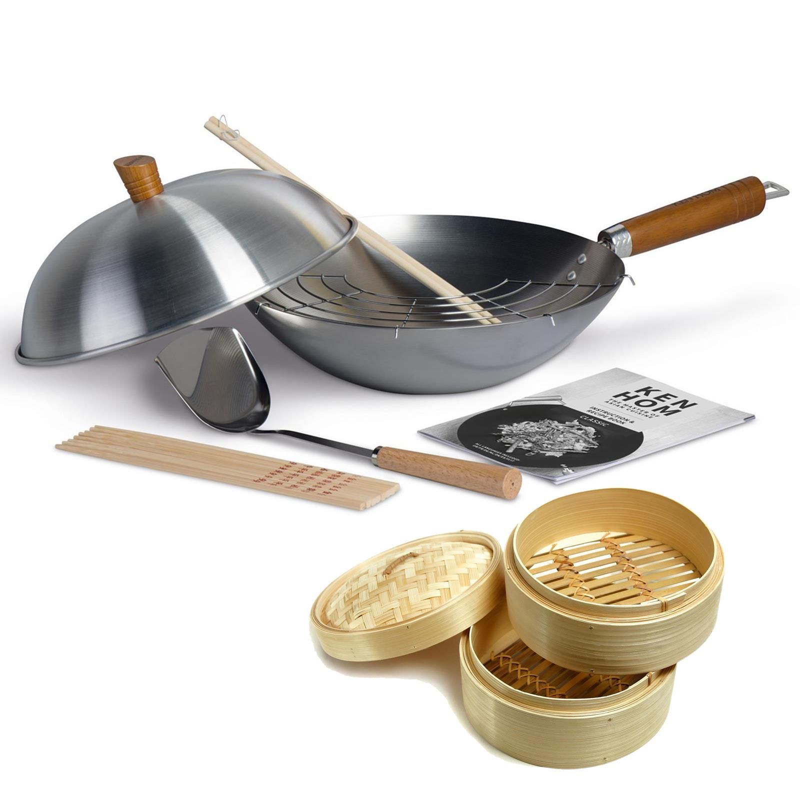 Ken Hom 11-tlg Wok Set 31 cm Wokpfanne Induktion unbeschichtet & Dampfkorb 20 cm