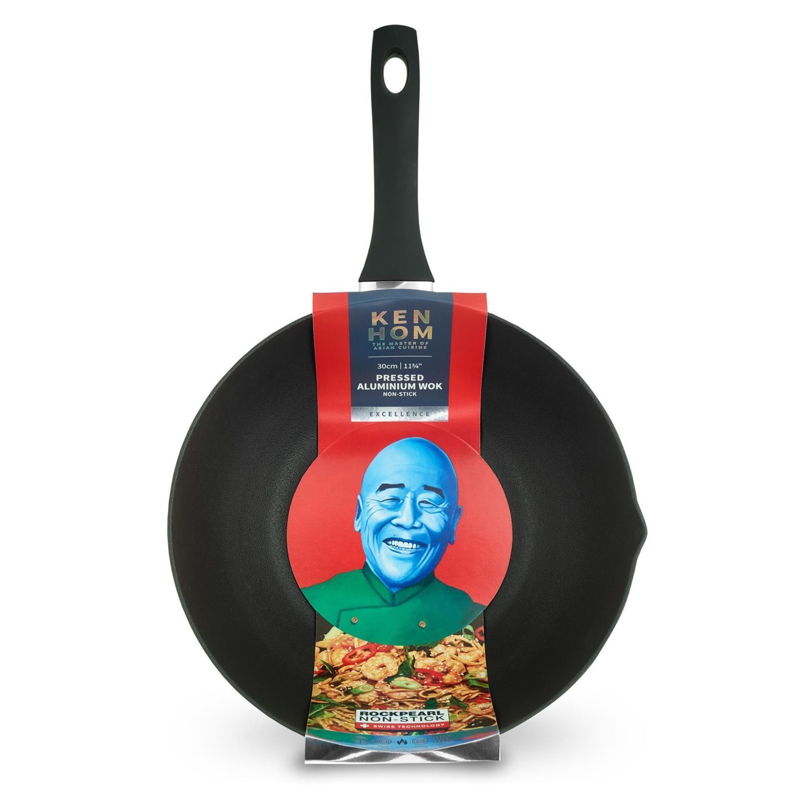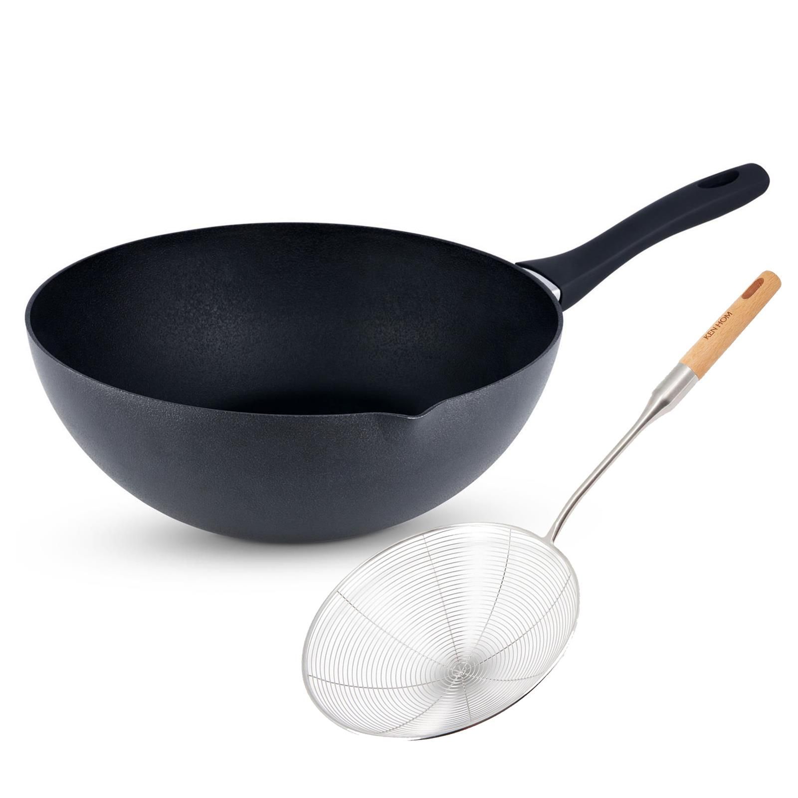 Ken Hom Alu Wok Set 30 cm Induktion & Fritierlöffel Aluminium Wokpfanne Antihaft
