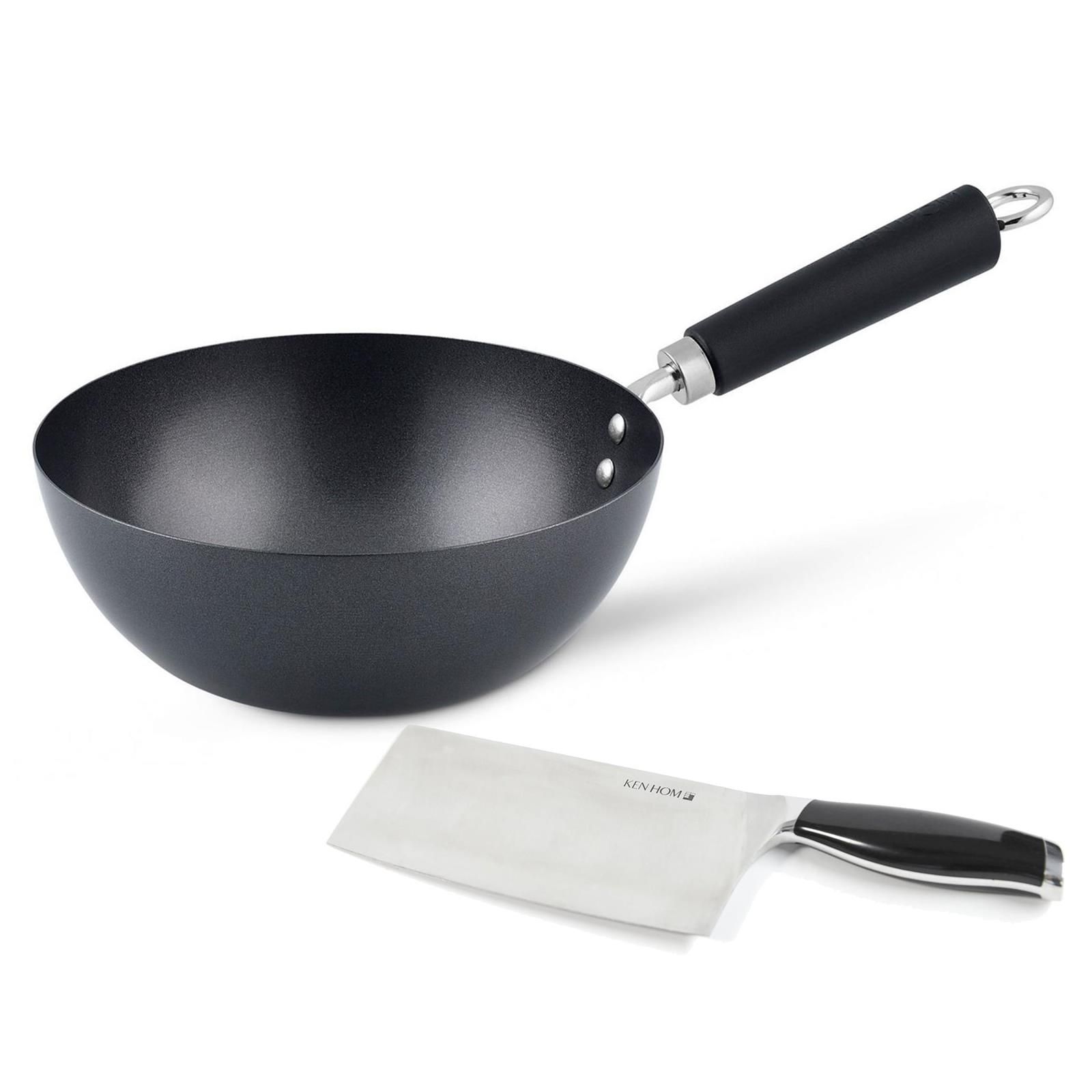 Ken Hom Antihaft Wok 20 cm Induktion inkl. Hackmesser 18 cm Stielwok Karbonstahl