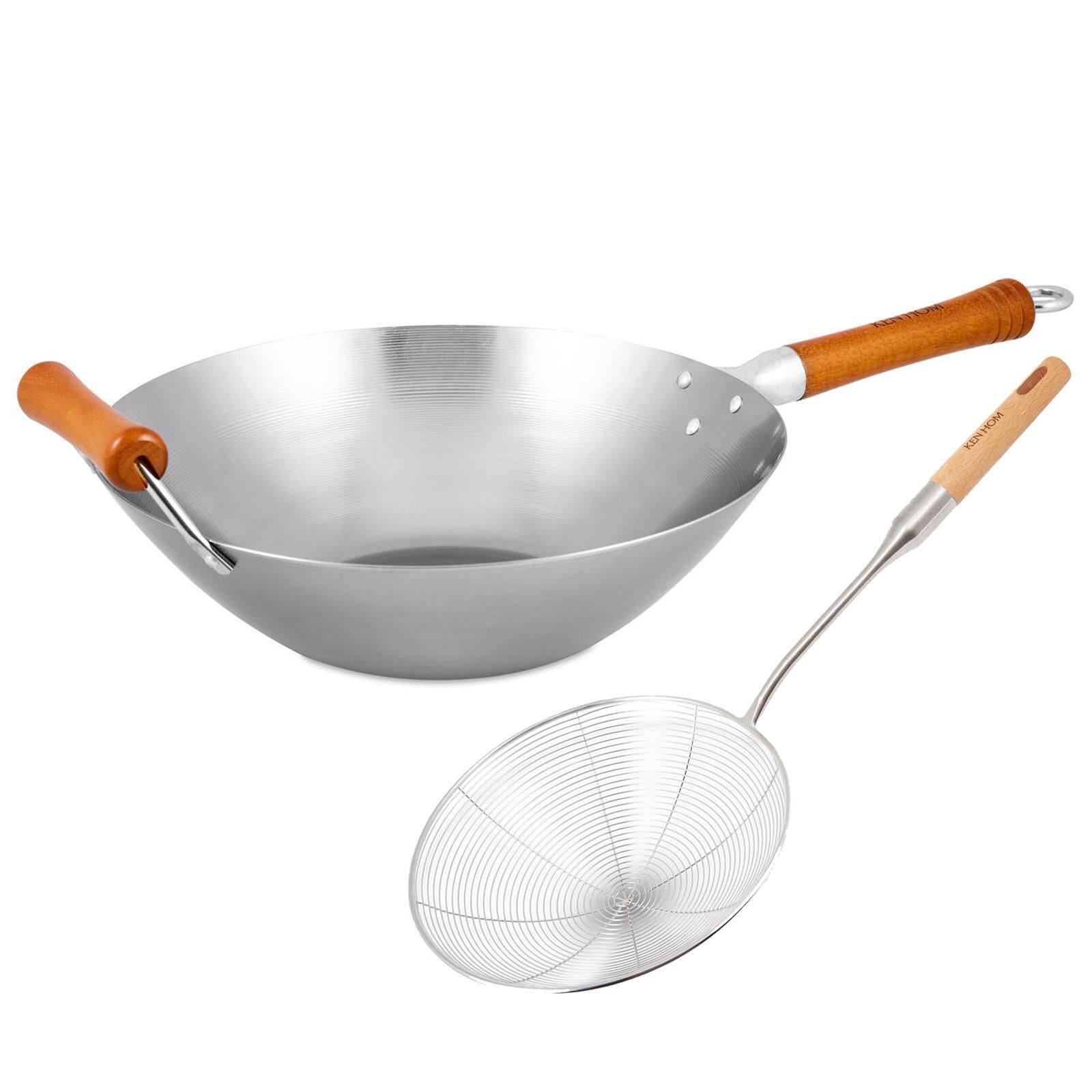 Ken Hom Wok 32 cm Induktion inkl. Fritierlöffel unbeschichteter Karbon Stielwok