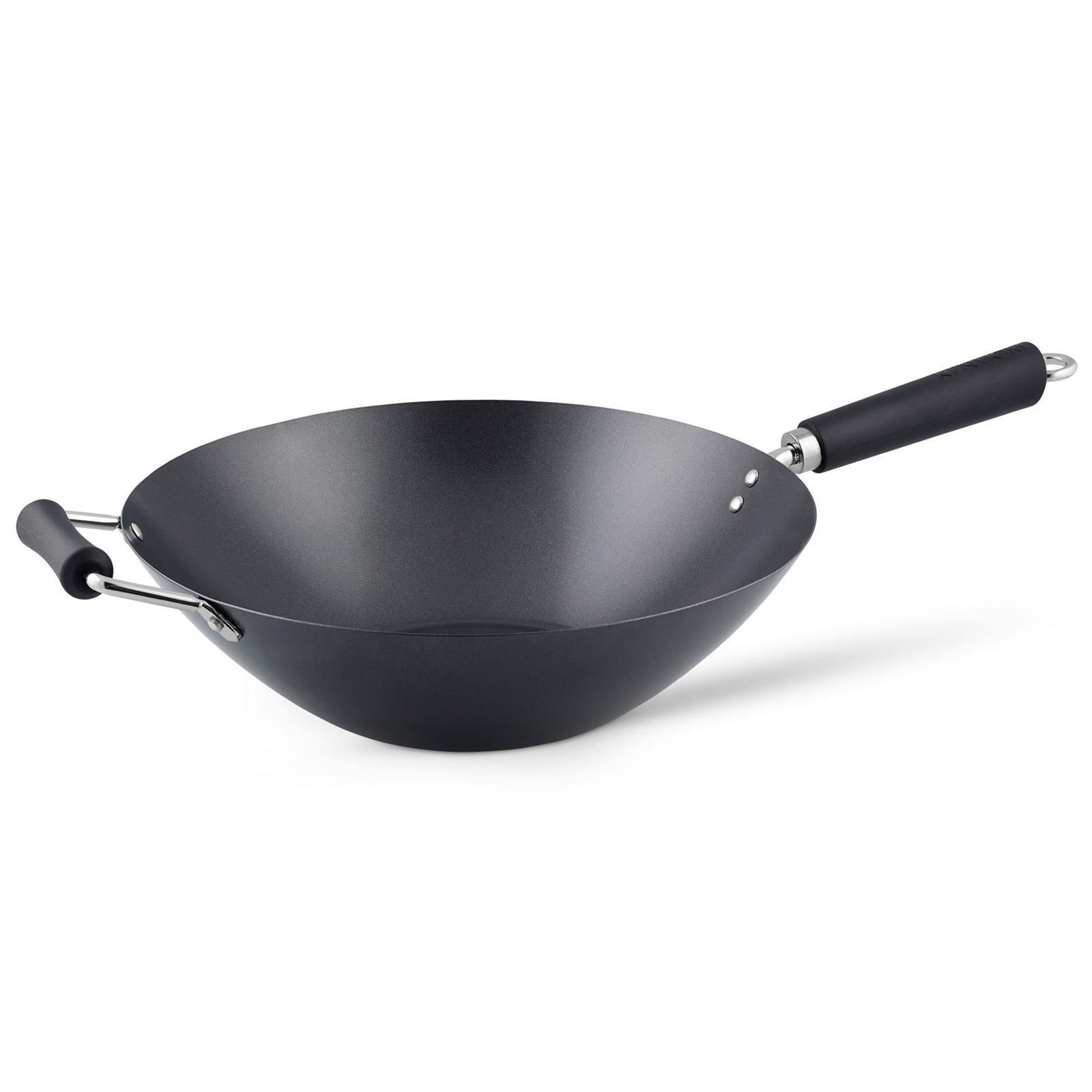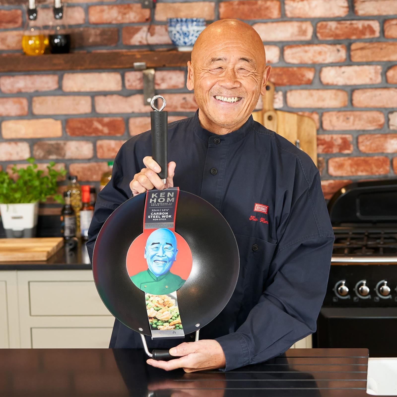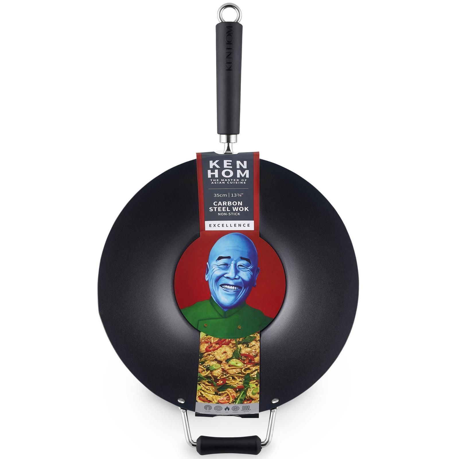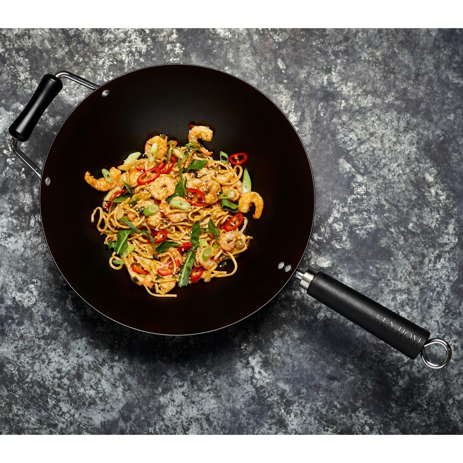 Ken Hom Wok 35 cm Induktion Antihaft Karbonstahl Stiel-Wokpfanne mit Gegengriff