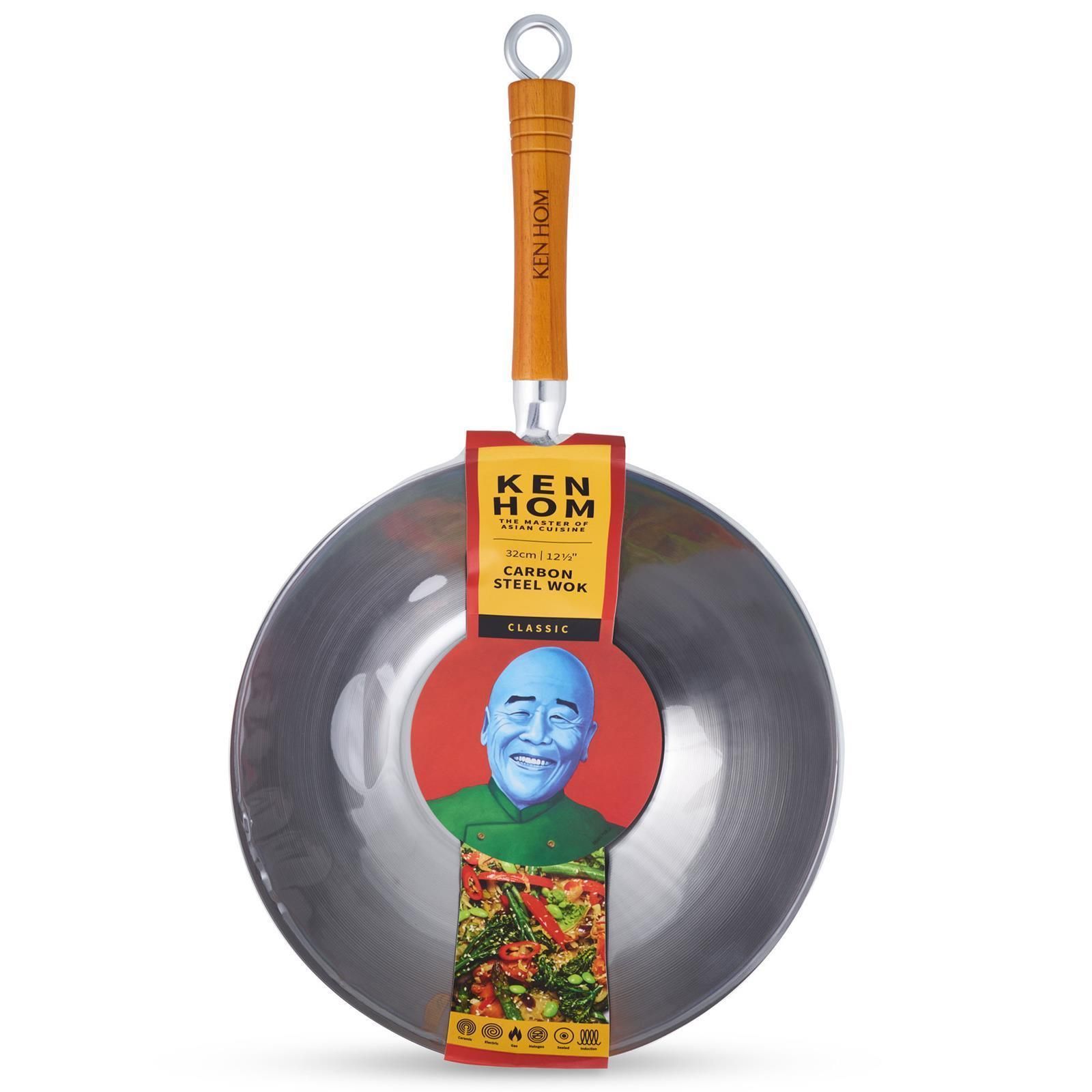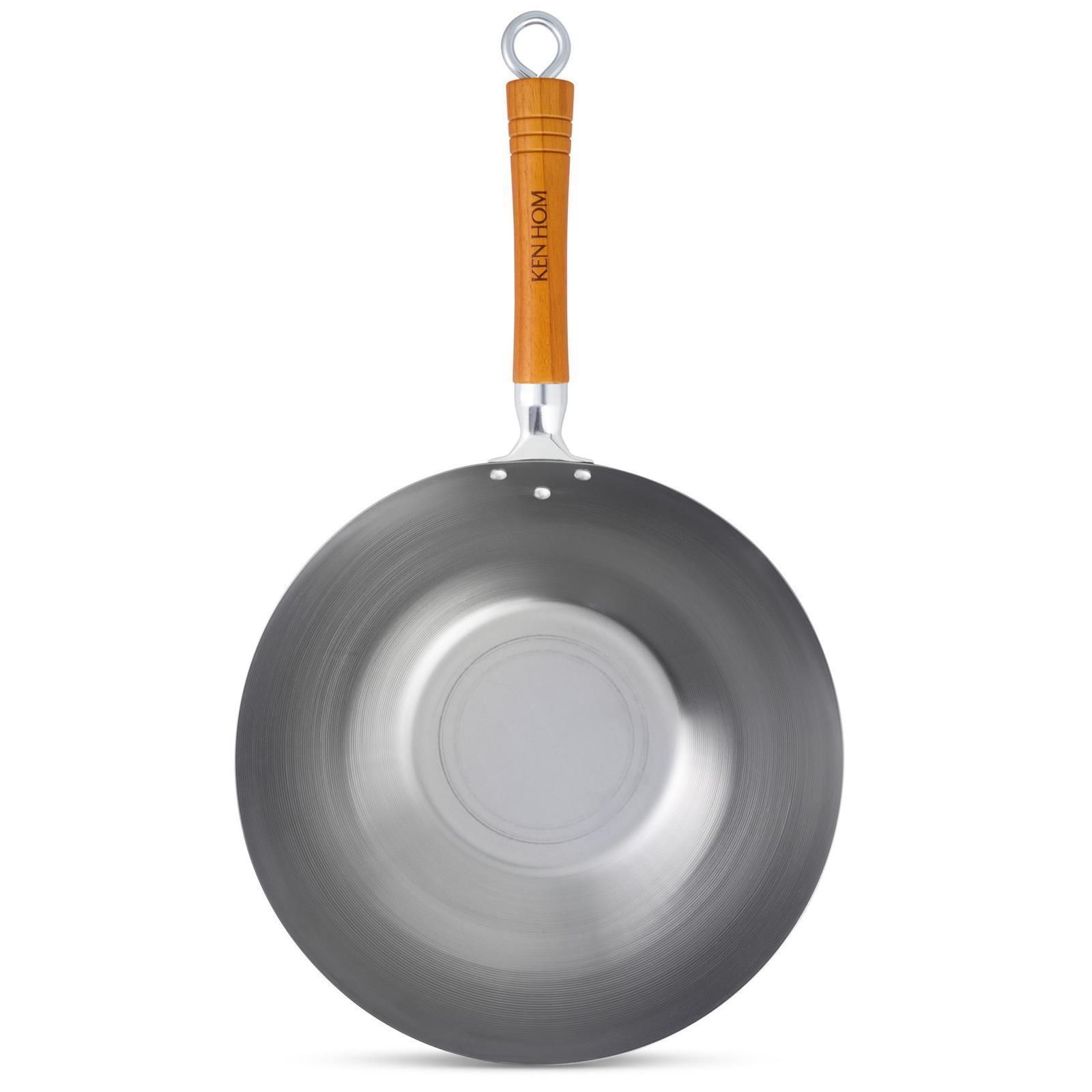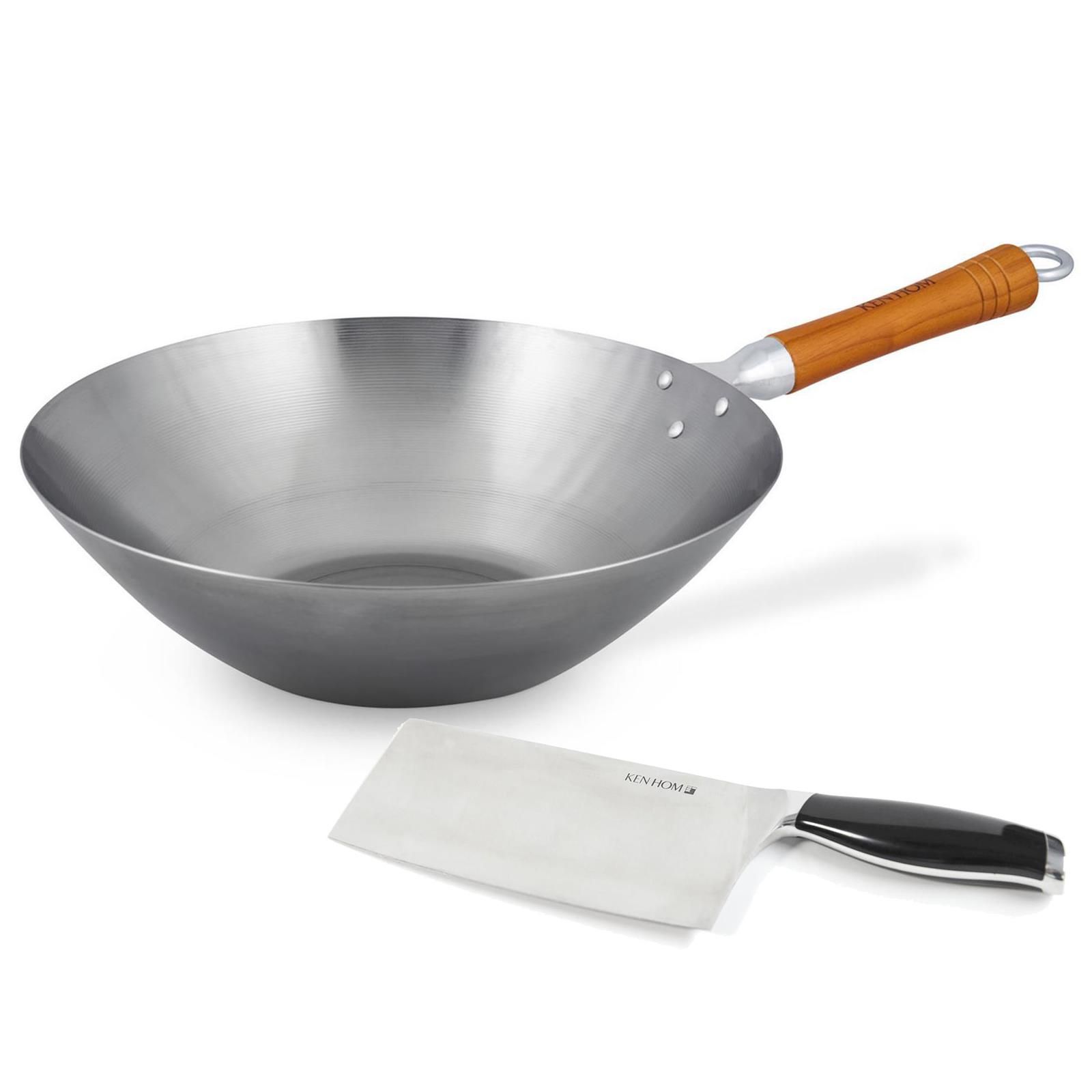 Ken Hom Wok Set 31 cm Induktion unbeschichteter Stielwok inkl. Hackmesser 18 cm