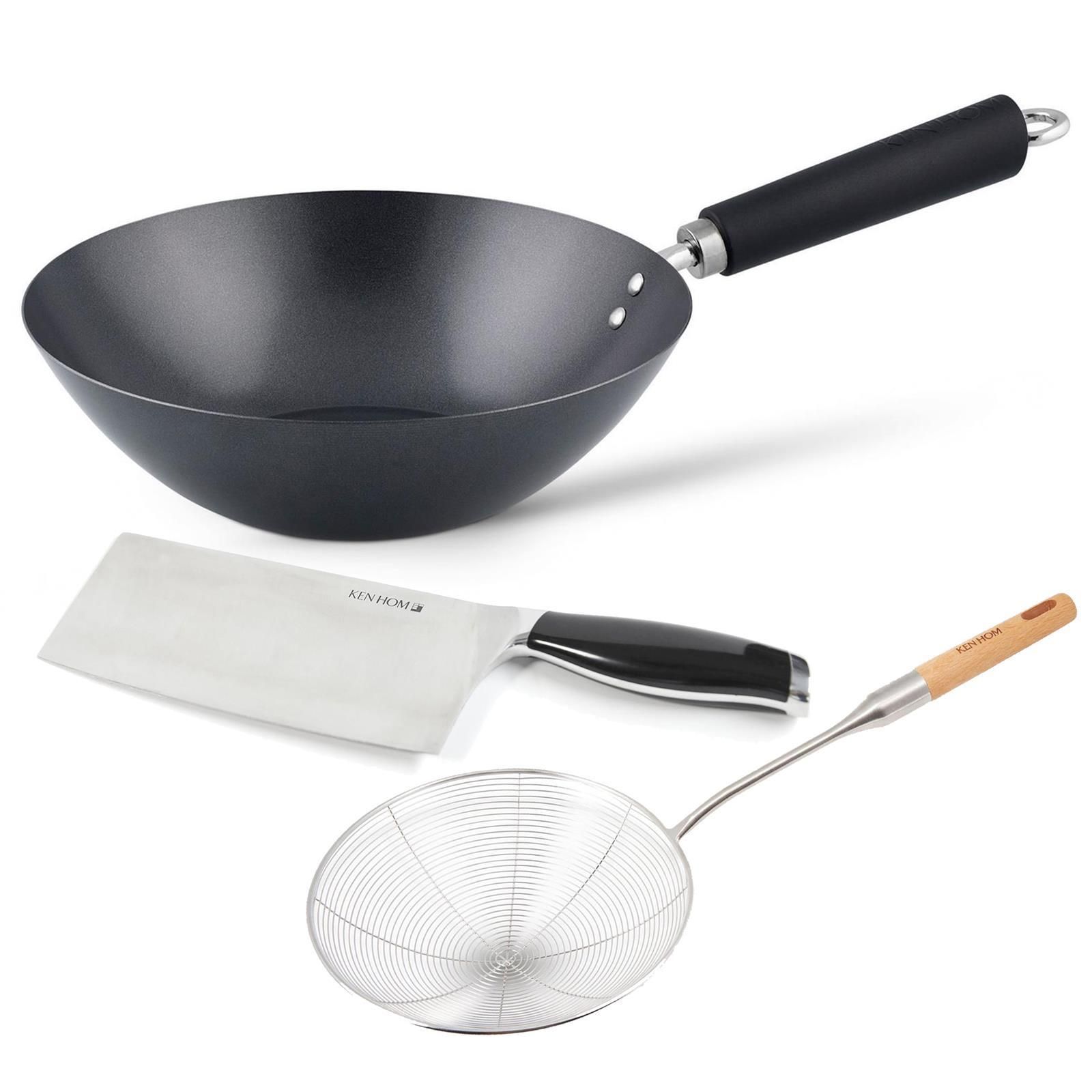 Ken Hom Wok Set Induktion 27 cm Karbon Antihaft inkl. Schaumlöffel & Hackmesser