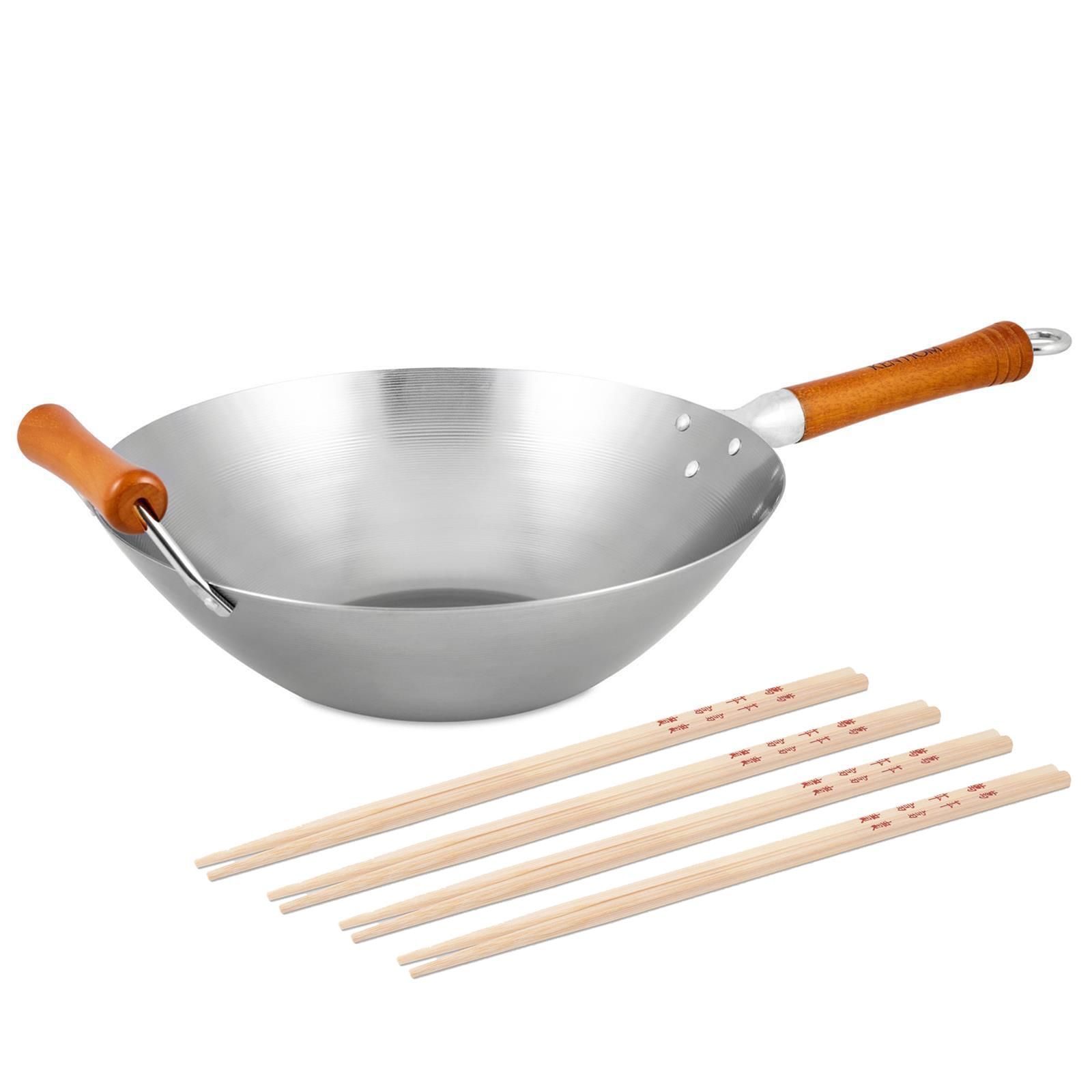 Ken Hom Wokpfanne 32 cm Induktion Karbonstahl unbeschichtet mit Ess-Stäbchen Set