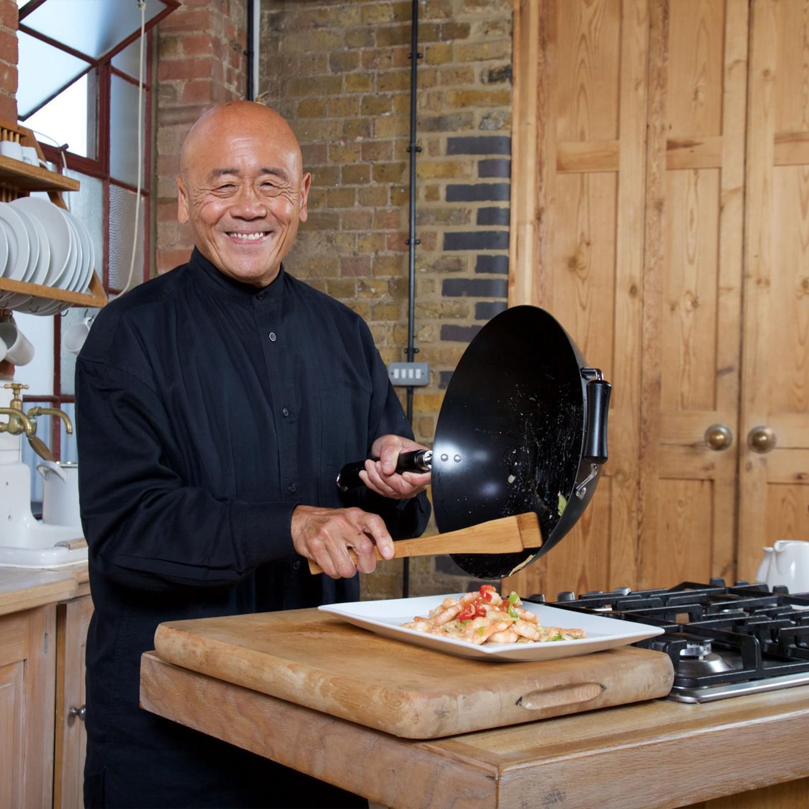 Ken Hom Wokpfanne 35 cm Antihaft Karbonstahl Induktion mit Dampfgarer & Stäbchen