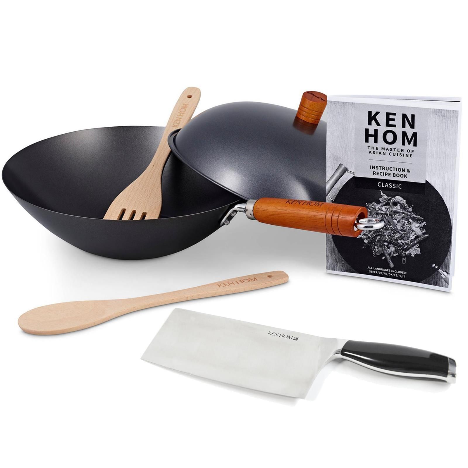 Ken Hom Wokpfanne & Deckel 31 cm Set inkl Hackmesser 18 cm 6-tlg Karbon Antihaft