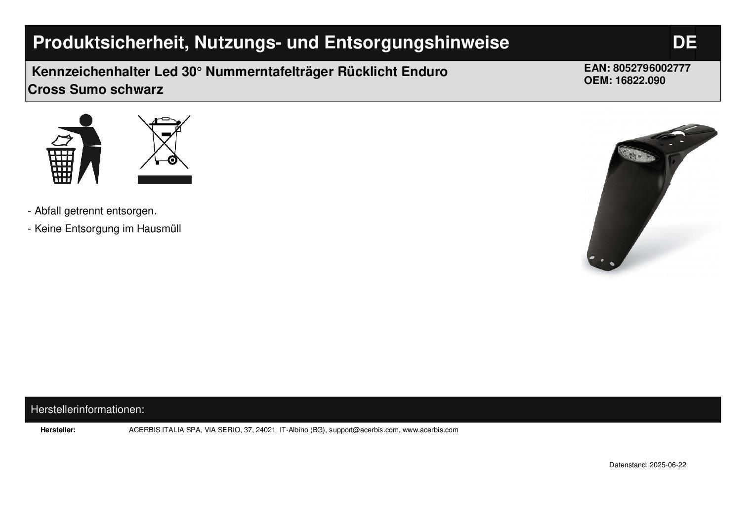 Acerbis Kennzeichenhalter Led 30? Nummerntafeltr?ger R?cklicht Enduro Cross Sumo schwarz