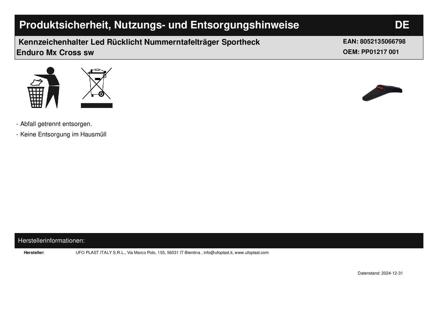Kennzeichenhalter Led Rücklicht Nummerntafelträger Sportheck Enduro Mx Cross sw