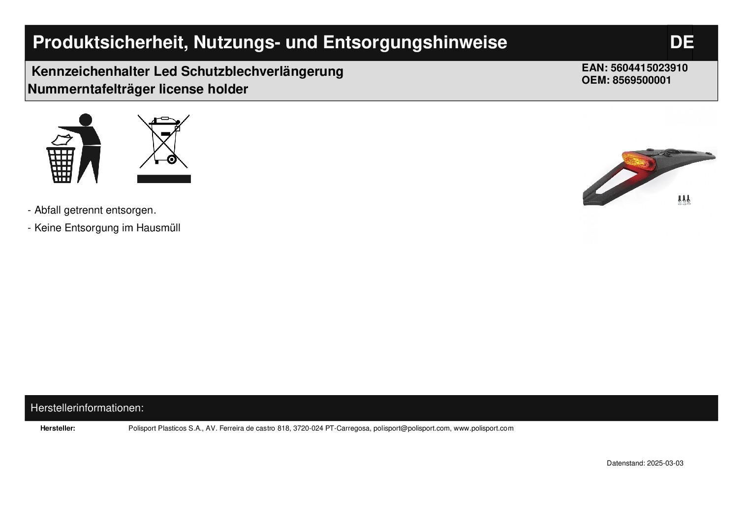 Polisport Kennzeichenhalter Led Schutzblechverlängerung Nummerntafelträger license holder