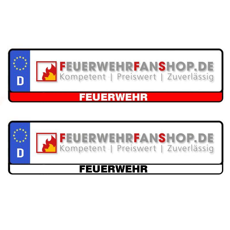 Kennzeichenhalter mit verschiedenen Aufdrucken "Feuerwehr".