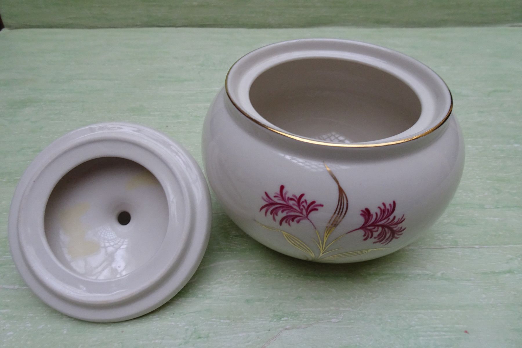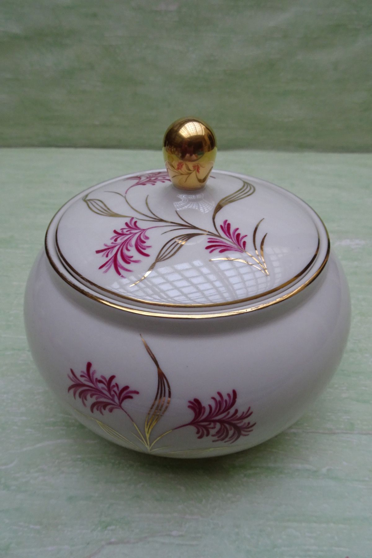 Kerafina goldene Blätter rote Blumen Deckeldose Kerzenleuchter Vasen