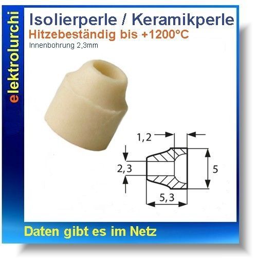Keramik-Isolierperle Keramikperle bis 2,3mm Drähte, + 1200°C, stapelbar, 10St