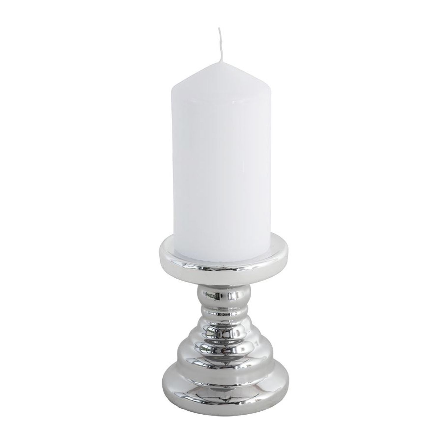 Keramik-Kerzenständer silber Kerzenhalter Tischleuchter Stumpenkerze Dekoration