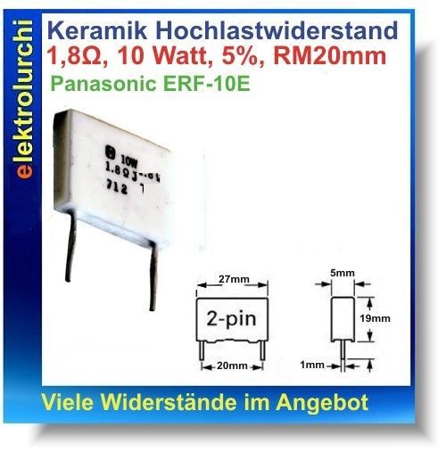Keramik Lastwiderstand 1,8 Ohm, 10 Watt, 5% Widerstand Hochlast, Panasonic,1St.