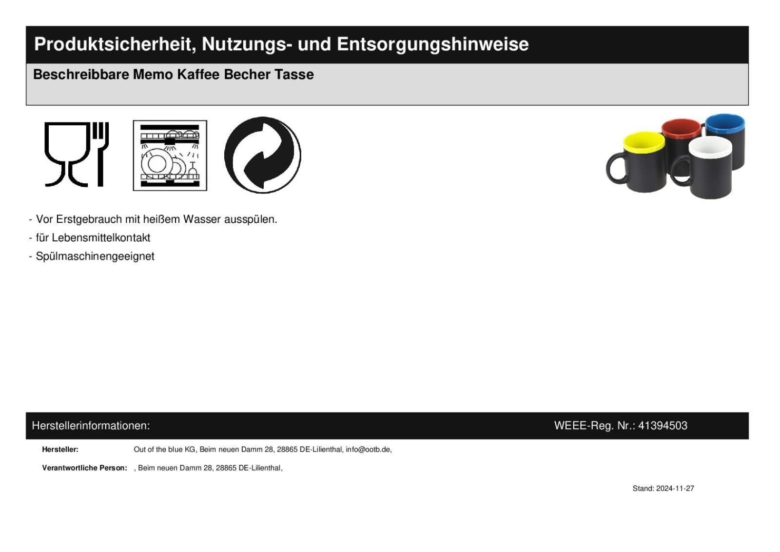 Out of the Blue Keramik Memo Kaffee Tasse mit Kreide beschreibbar Kaffeebecher Kreidetafel