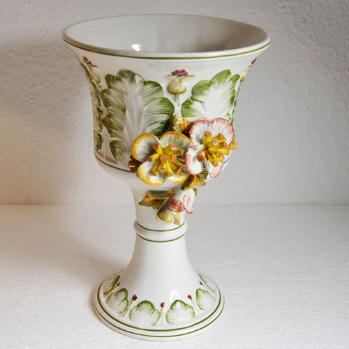 Keramik Pokal Kelch Amphore Prunk Vase Blumen floral 3D Este Porzellan Italien