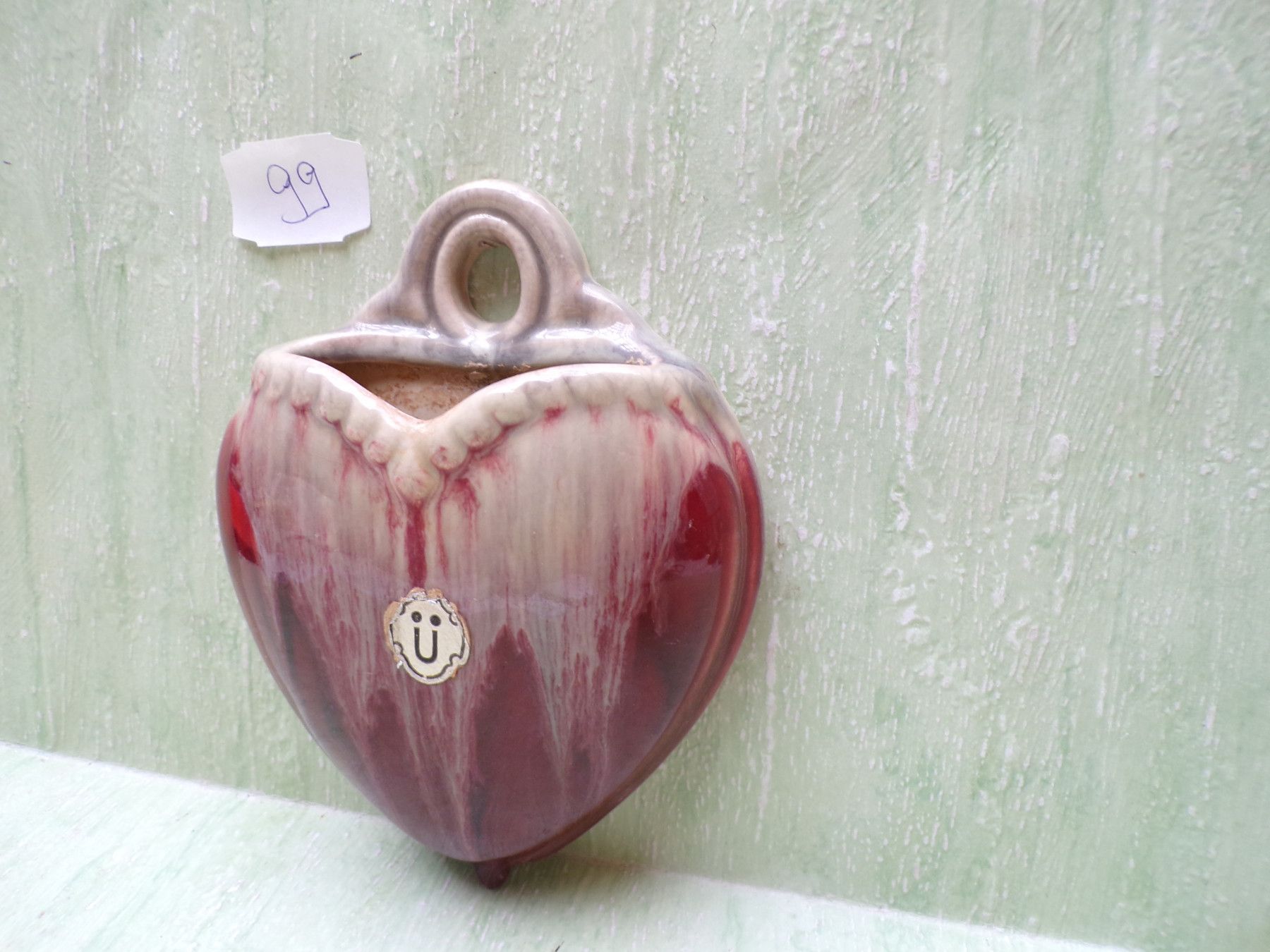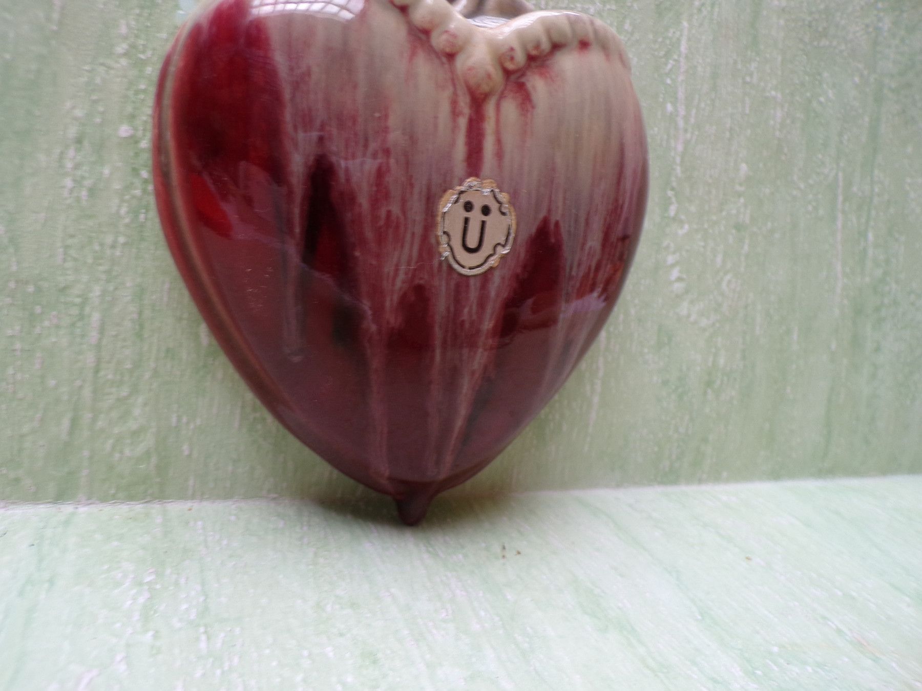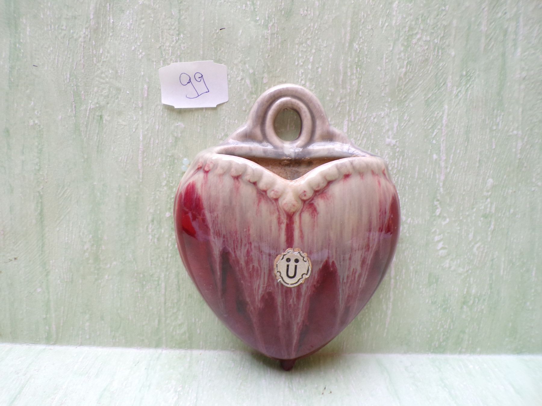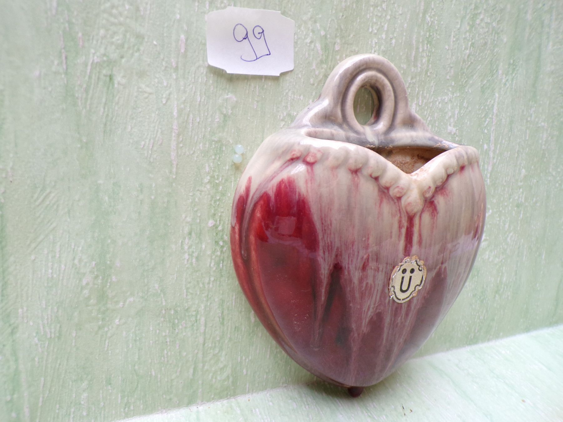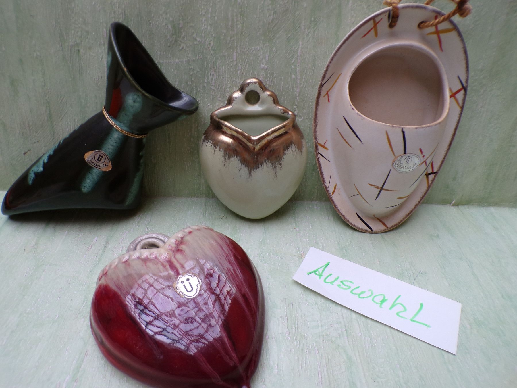 Keramik Porzellan Wandvase 50/60er Jahre Uebelacker Herz handgemalt 716 739 734
