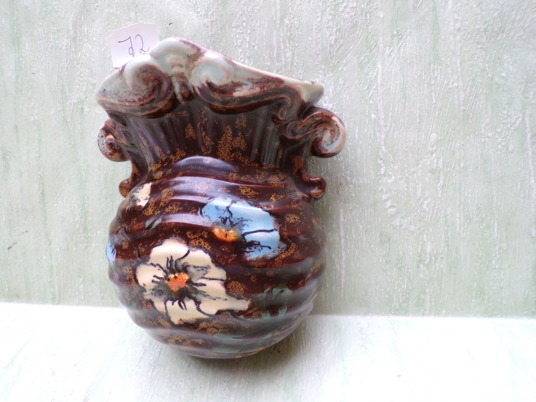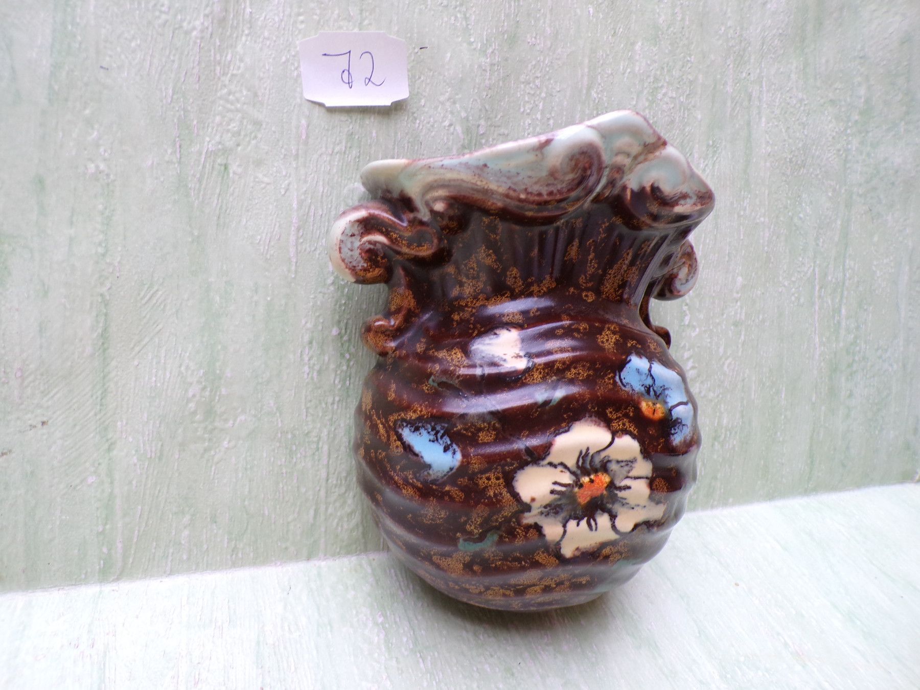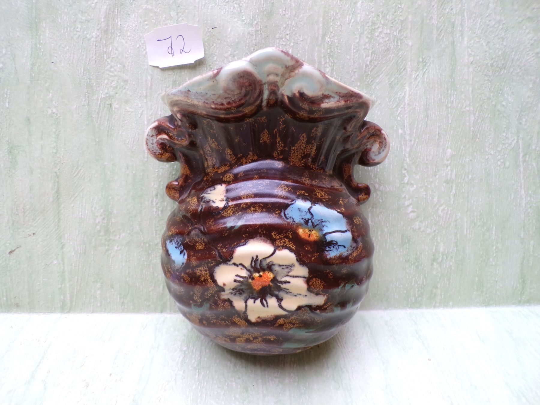 Keramik Porzellan Wandvase 50/60er Jahre orange-bunt mit Nr / ohne Nr