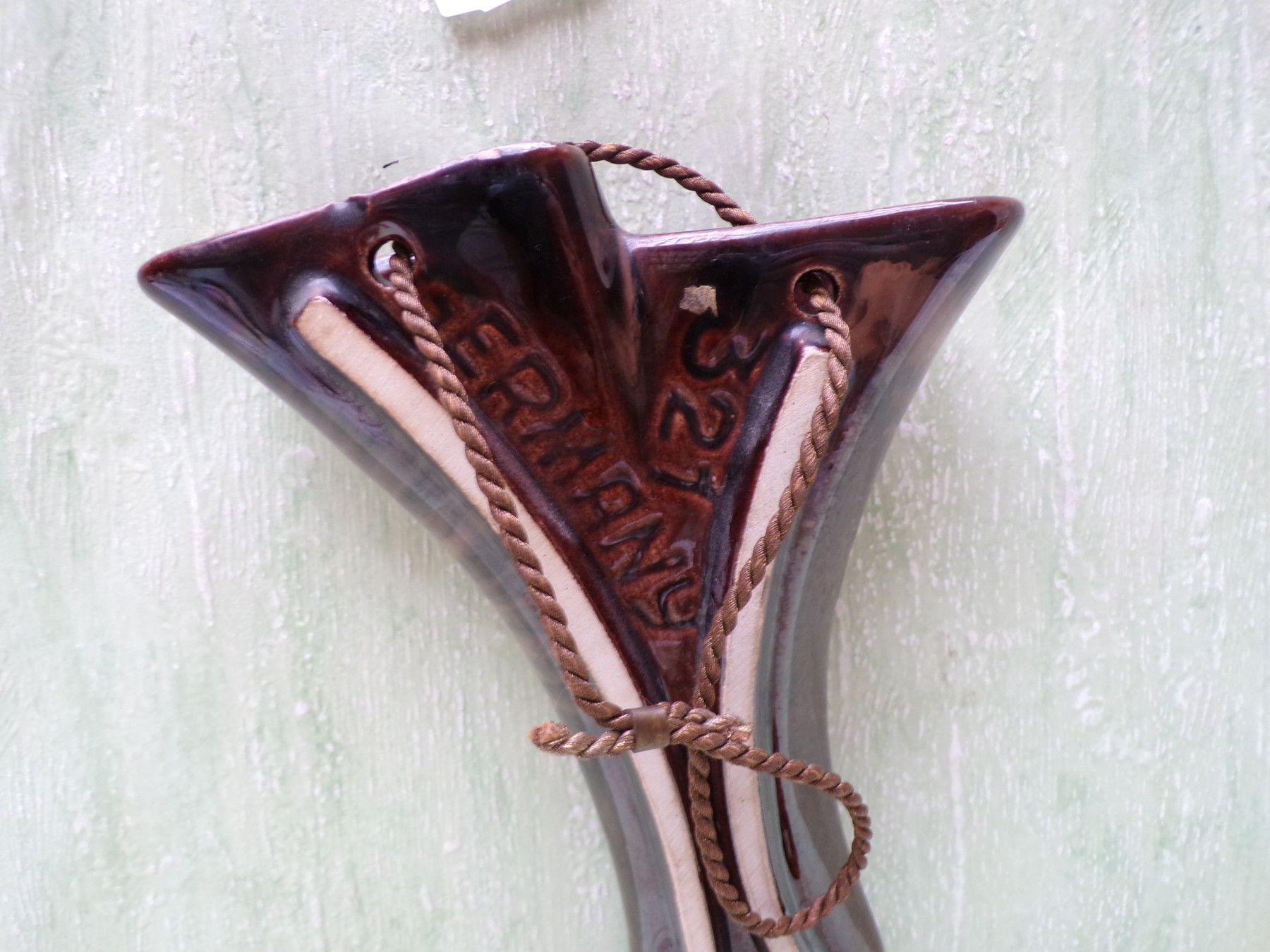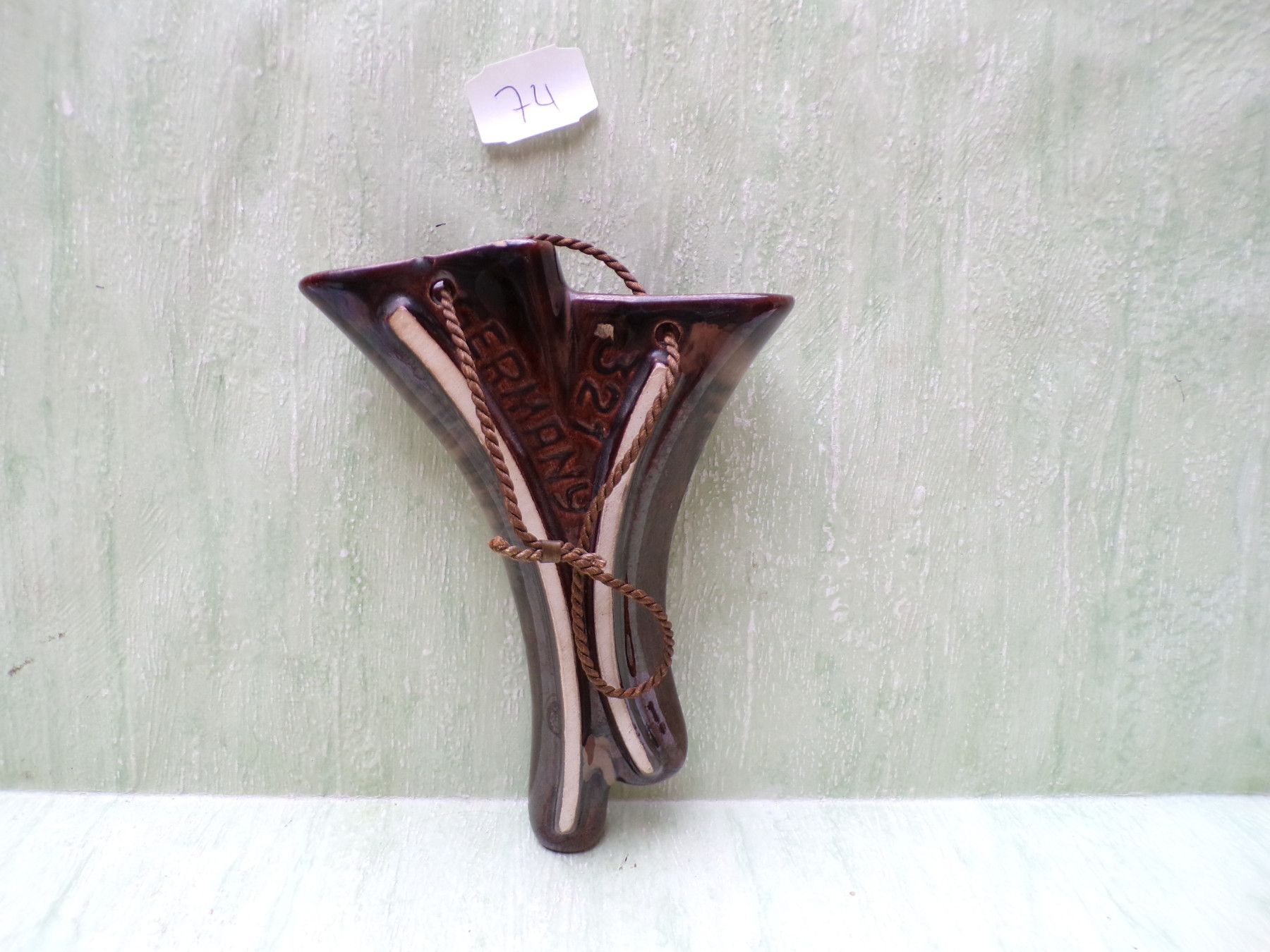 Keramik Porzellan Wandvase 50/60er Jahre Jasba grün-braun-creme gelblich