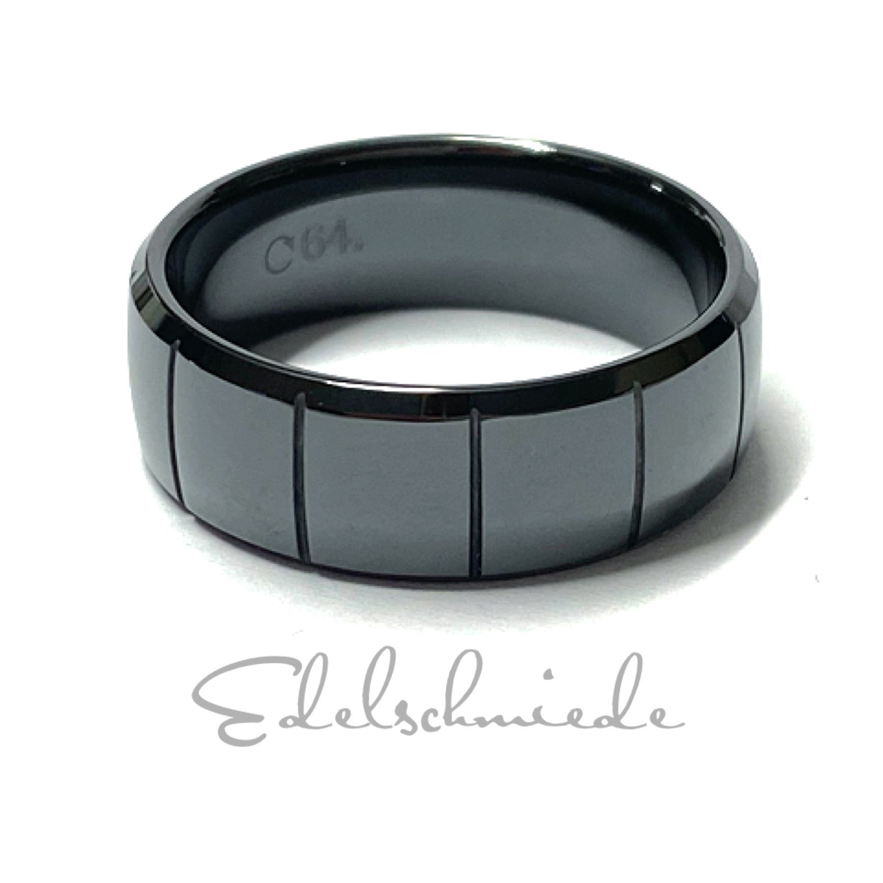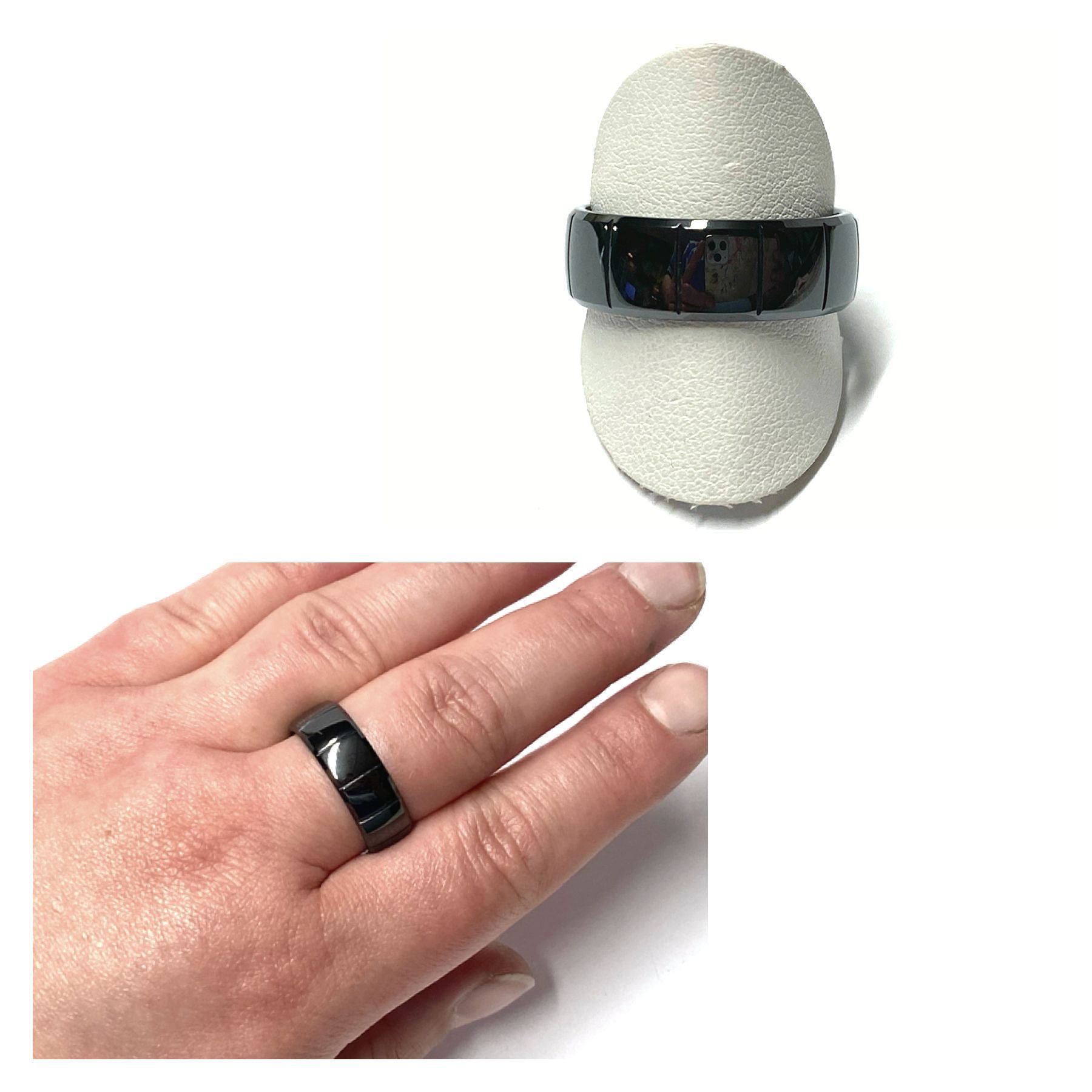 Keramik Ring halbrund schwarz 8 mm Bandring Ehering Trauring #60