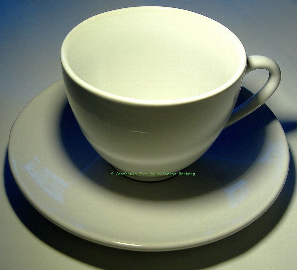 Keramik Tasse mit Untertasse weiss Kaffeetasse Teetasse Kaffeegedeck