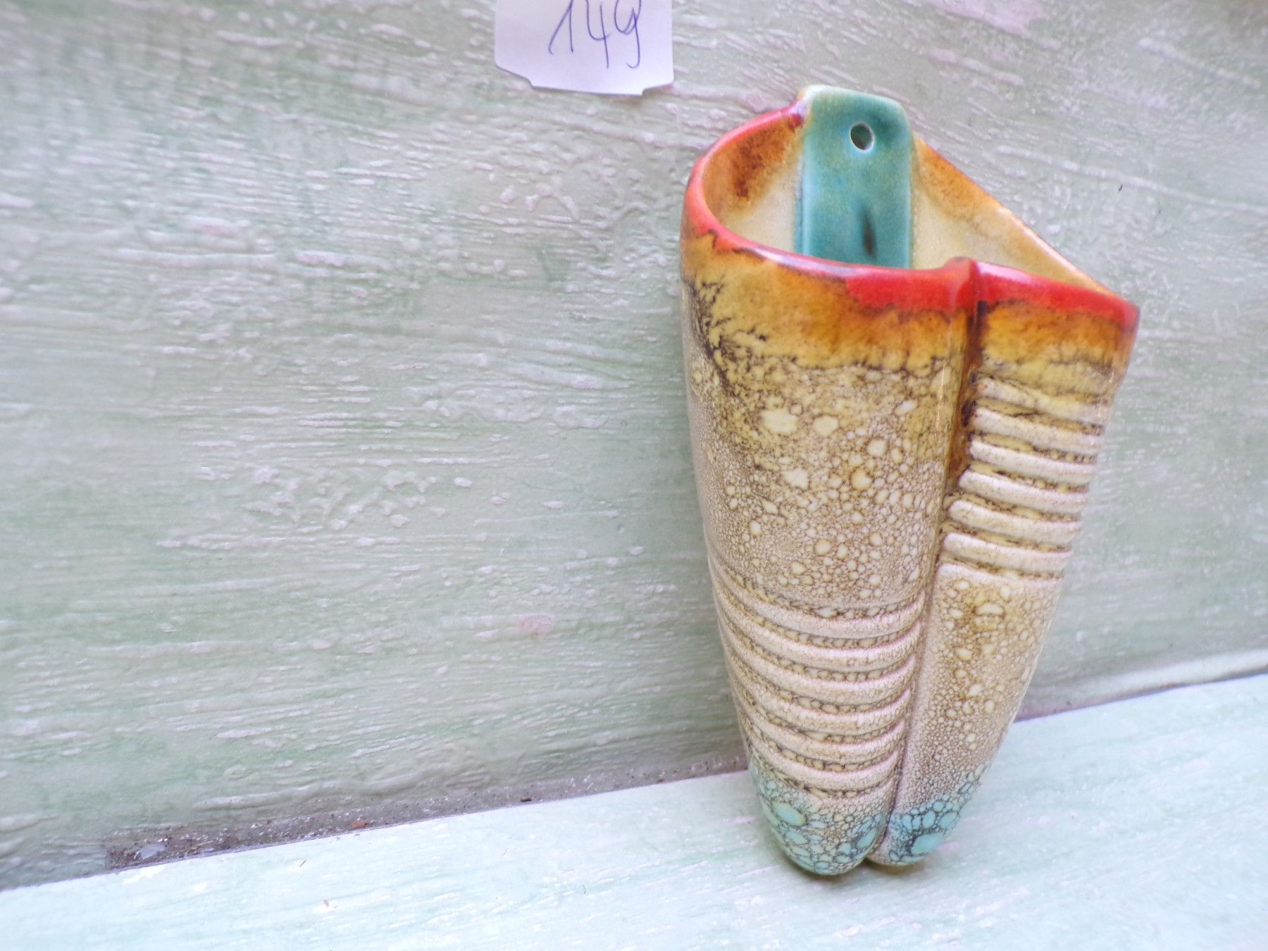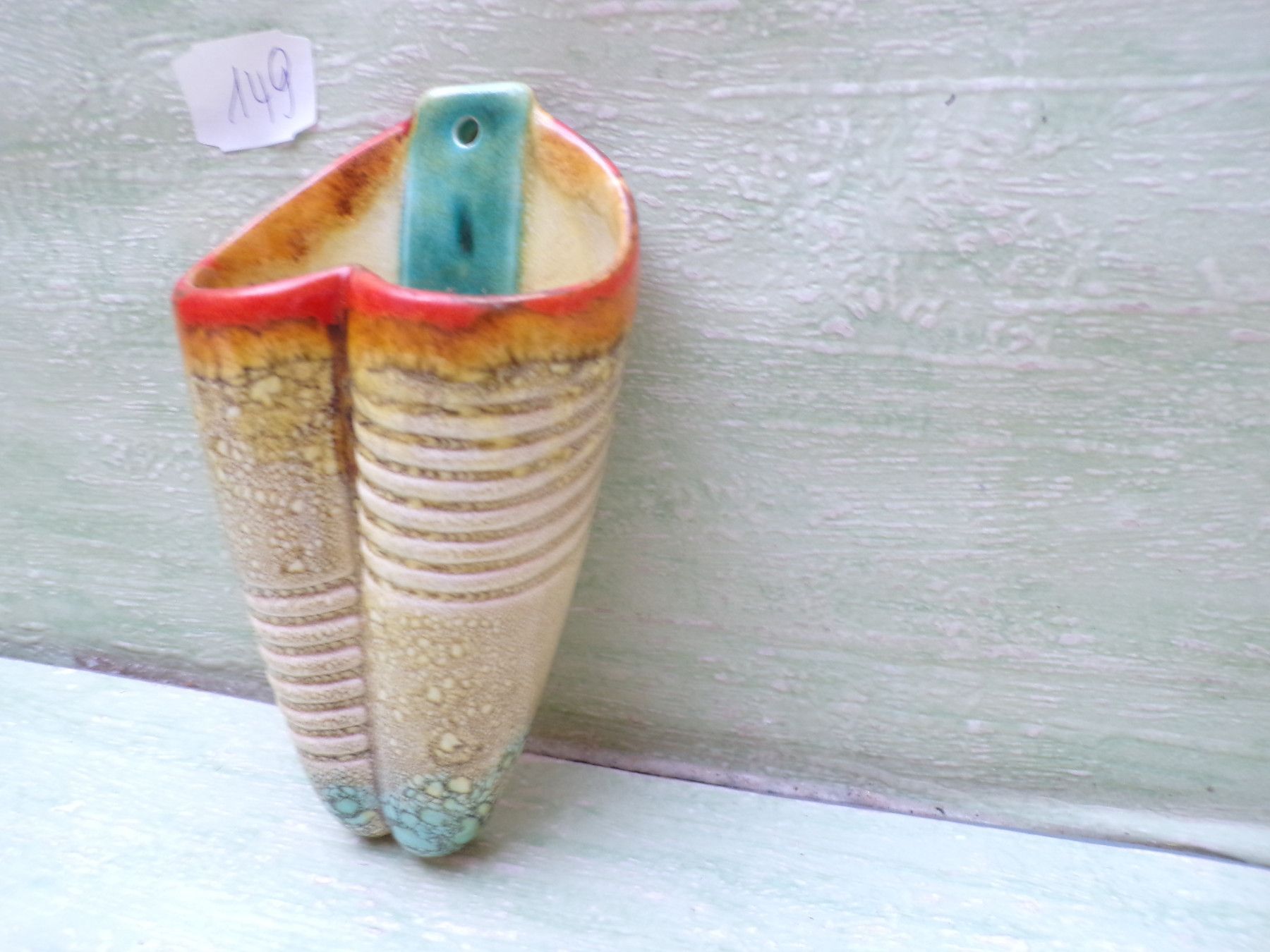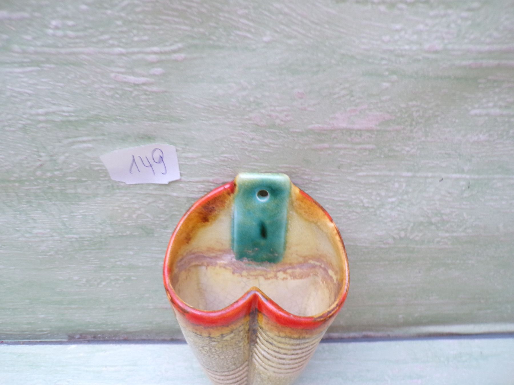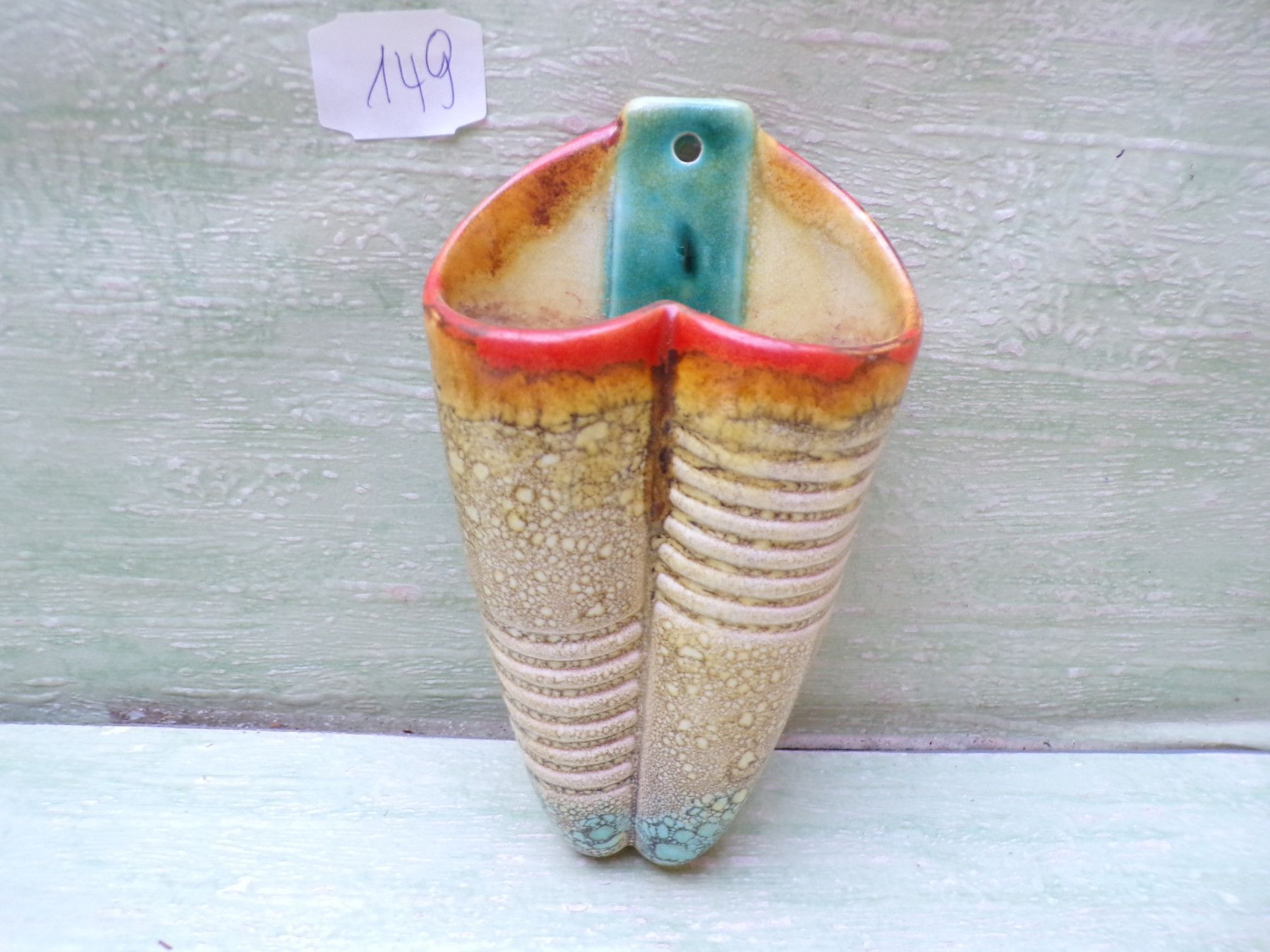 Keramik Wandvase altes Hummel VP 4/0 CW&Krone orange-türkis ca 13,5cm