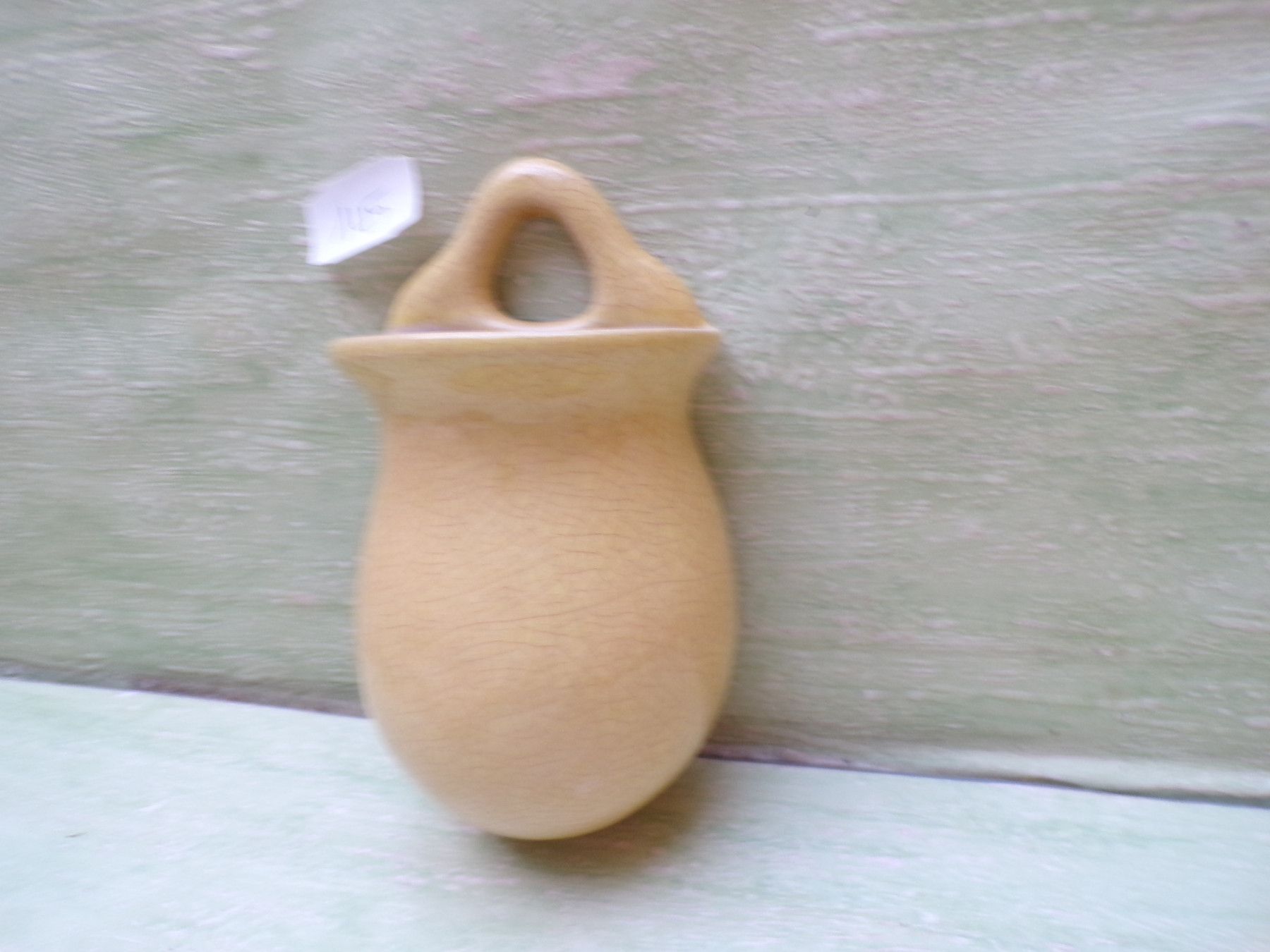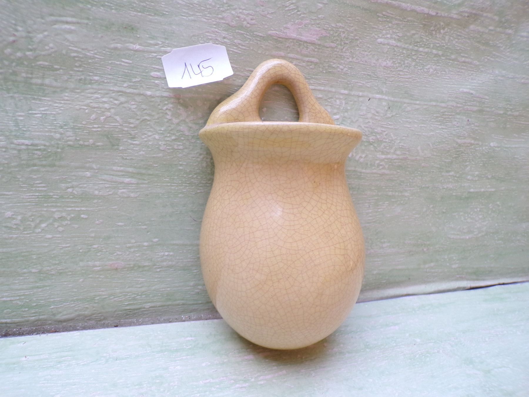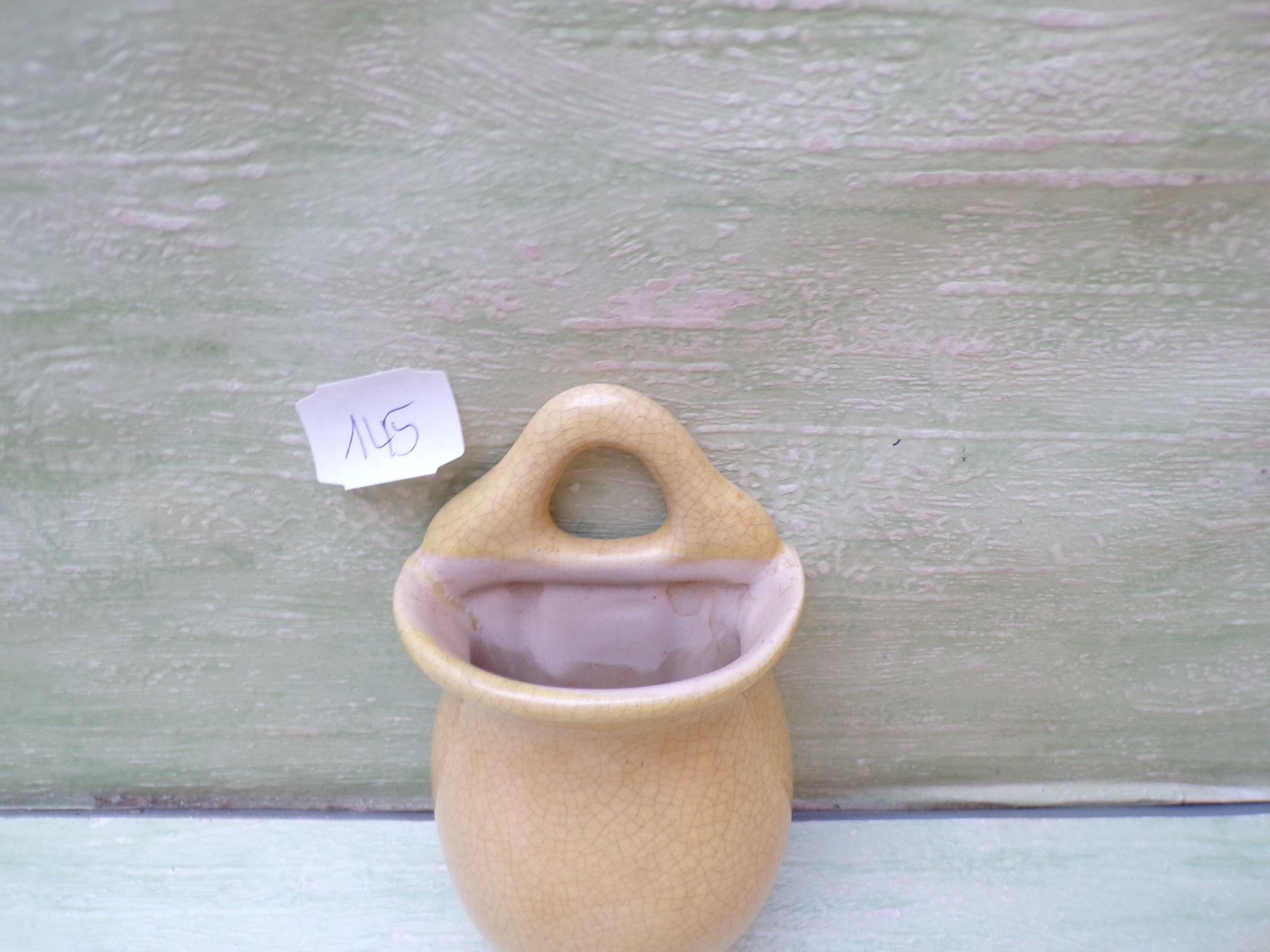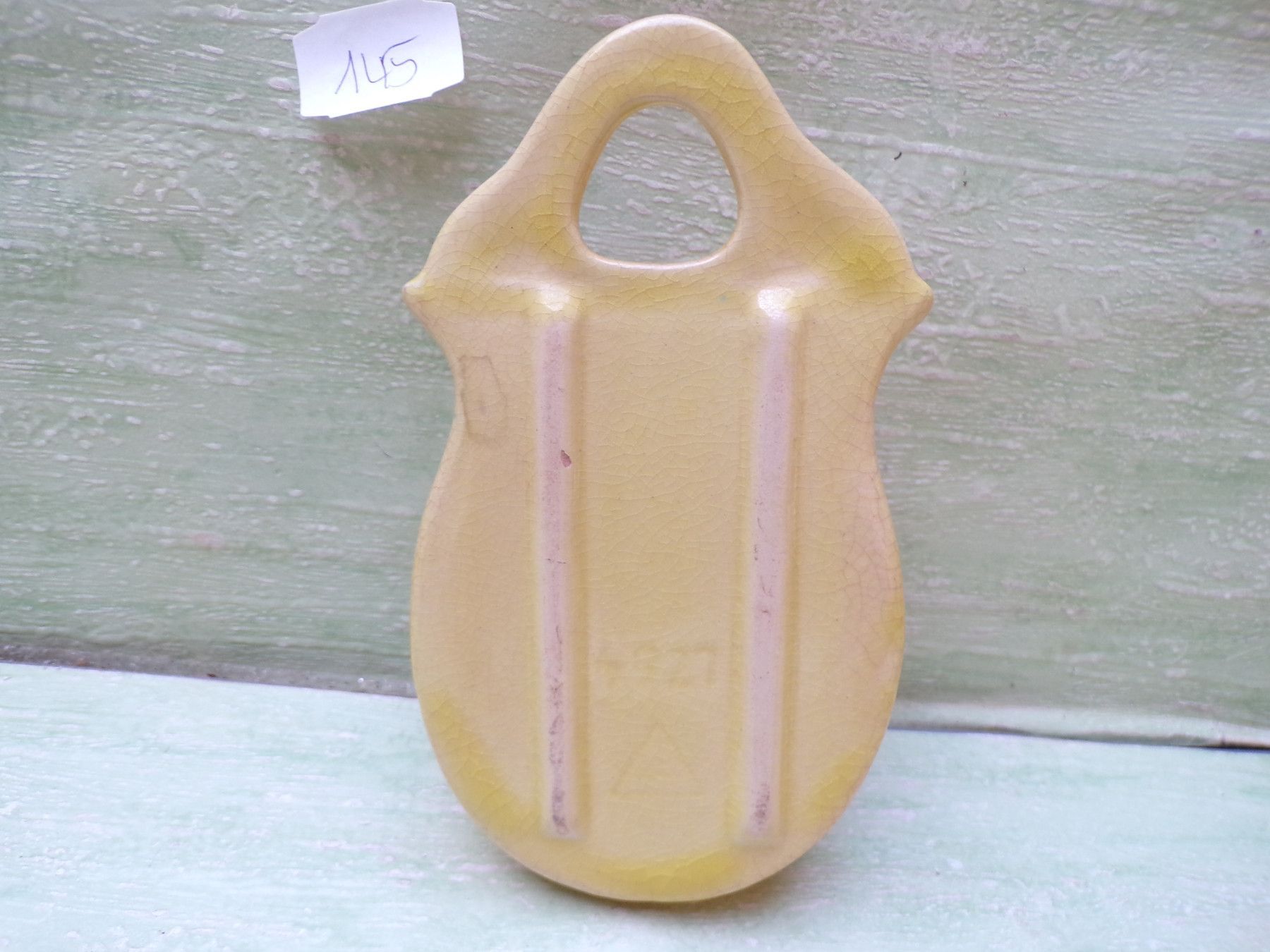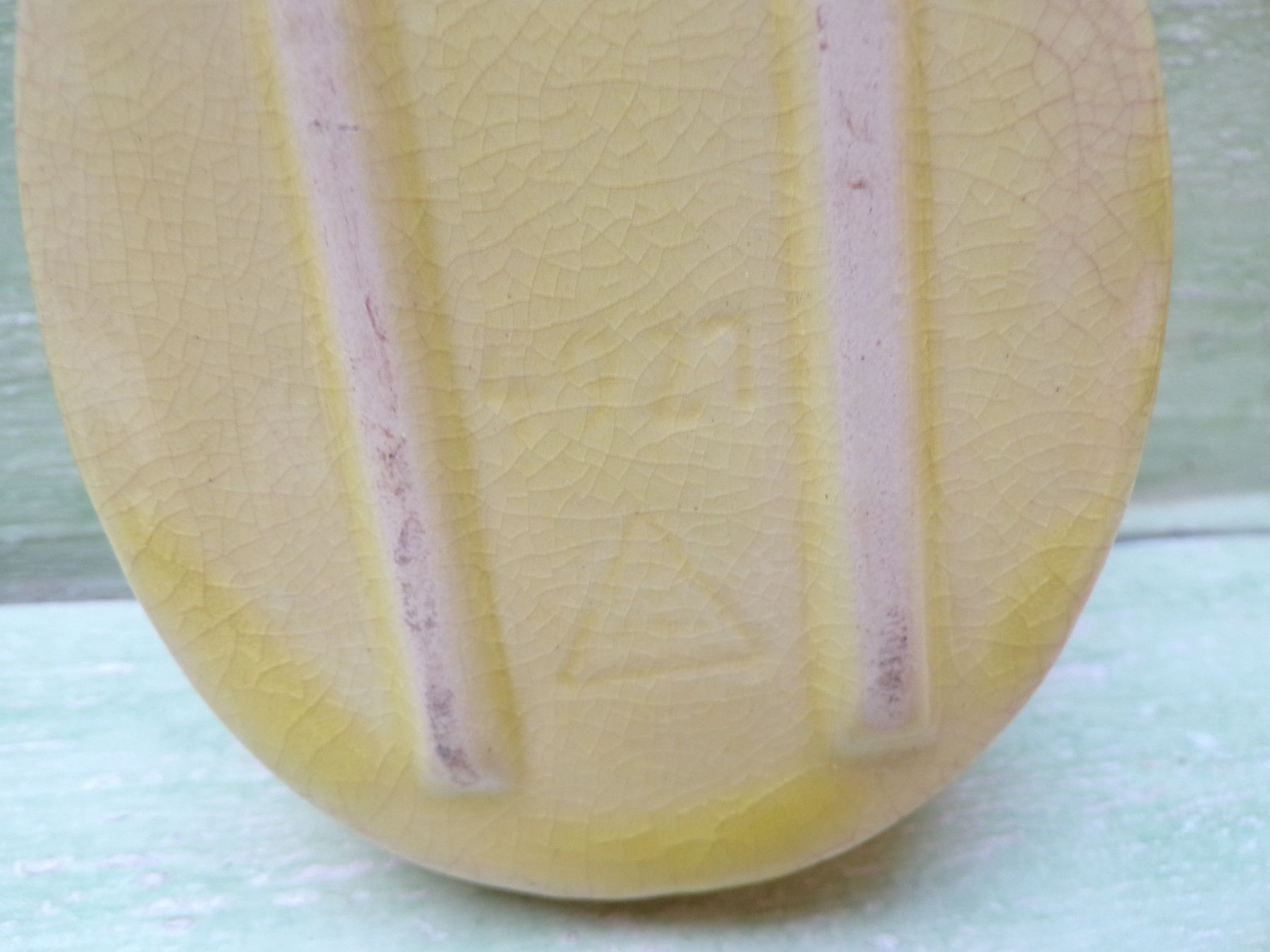 Keramik Wandvase gelbes Crauele-Design Bodenmarke "Dreieck" Nr unleserlich ca 14,5cm