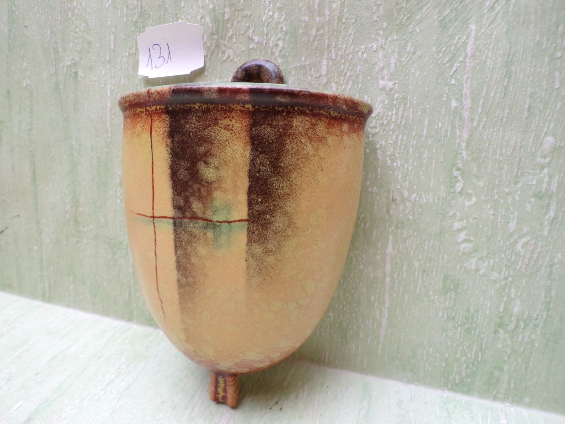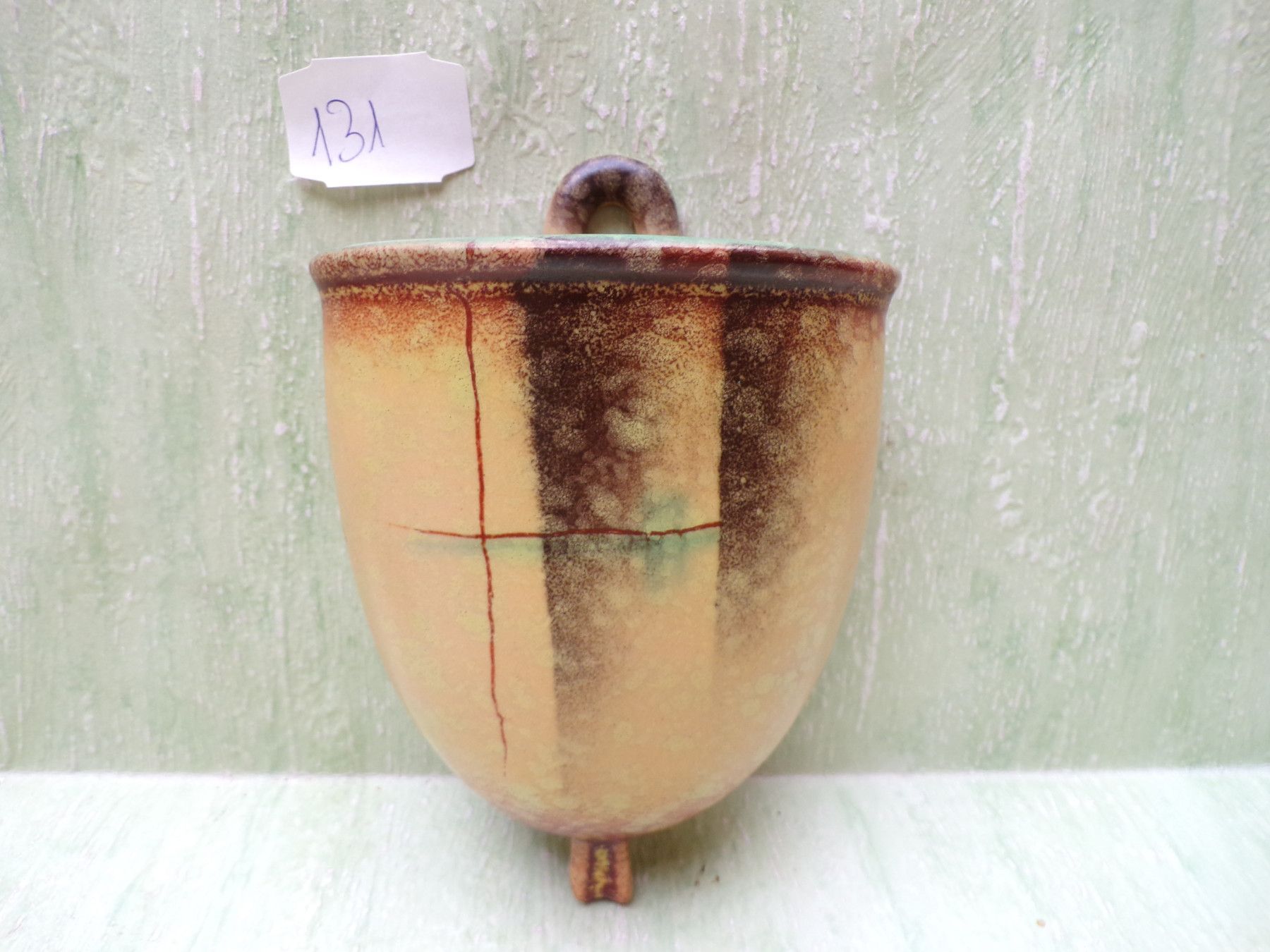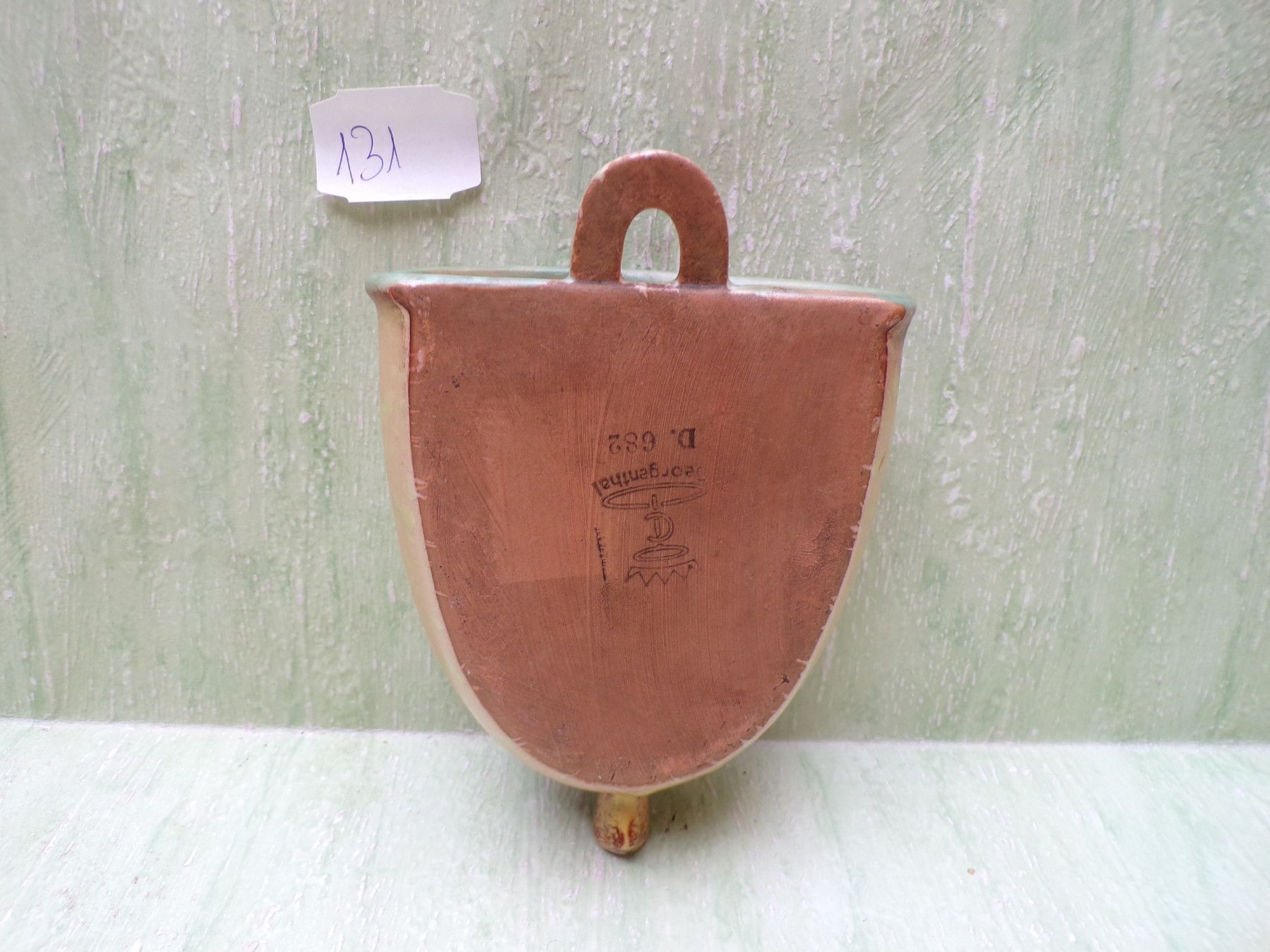 Keramik Wandvase Georgenthal VEB Carstens 682 gelb-grün-bräunlich ca 12,5cm Art Deco