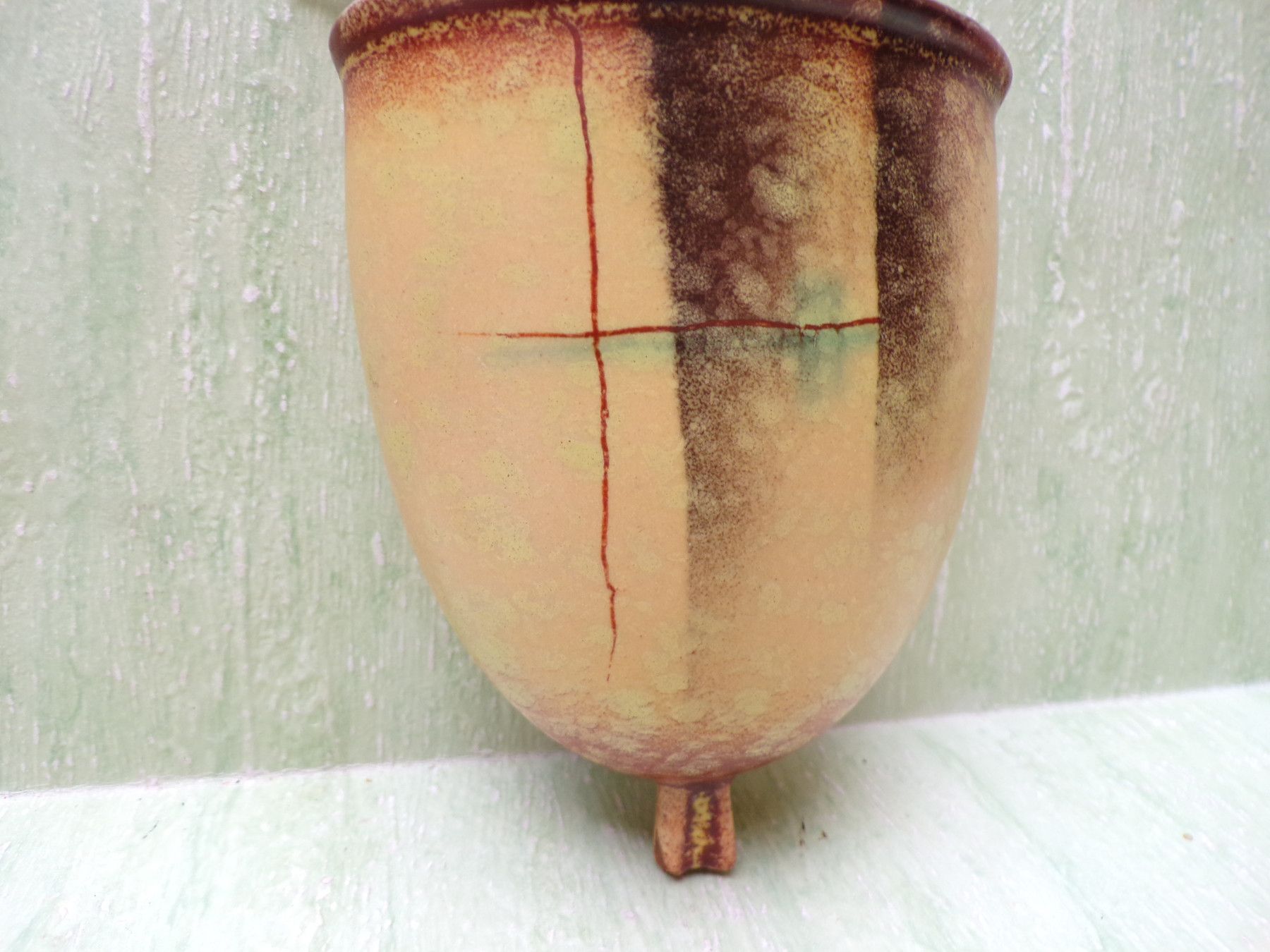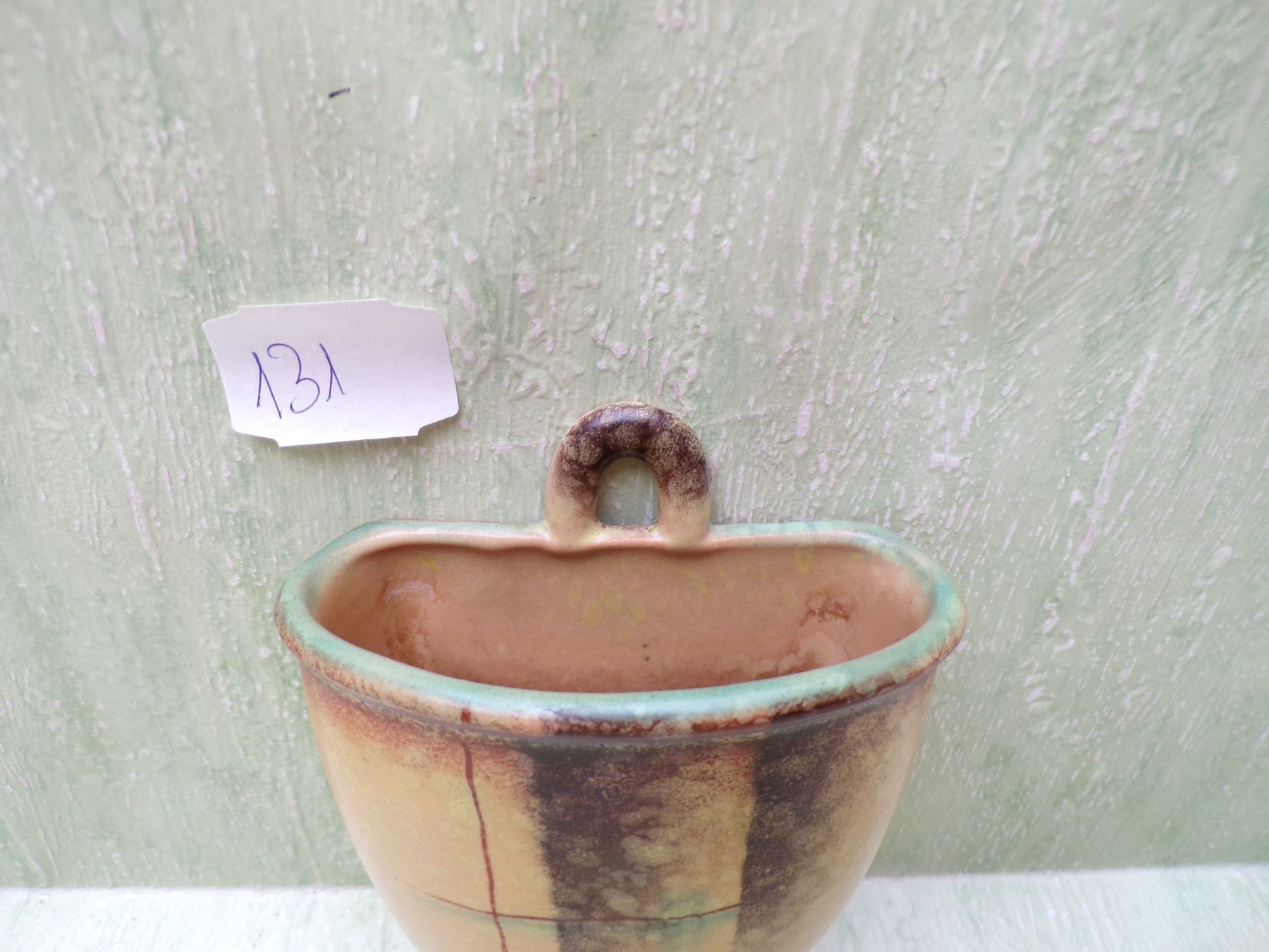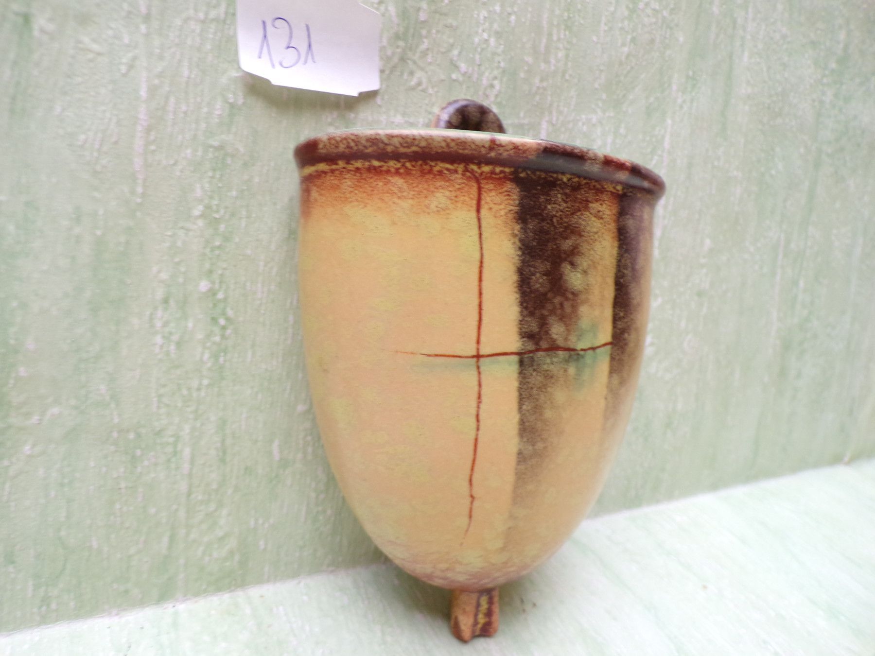 Keramik Wandvase Georgenthal VEB Carstens 682 gelb-grün-bräunlich ca 12,5cm Art Deco