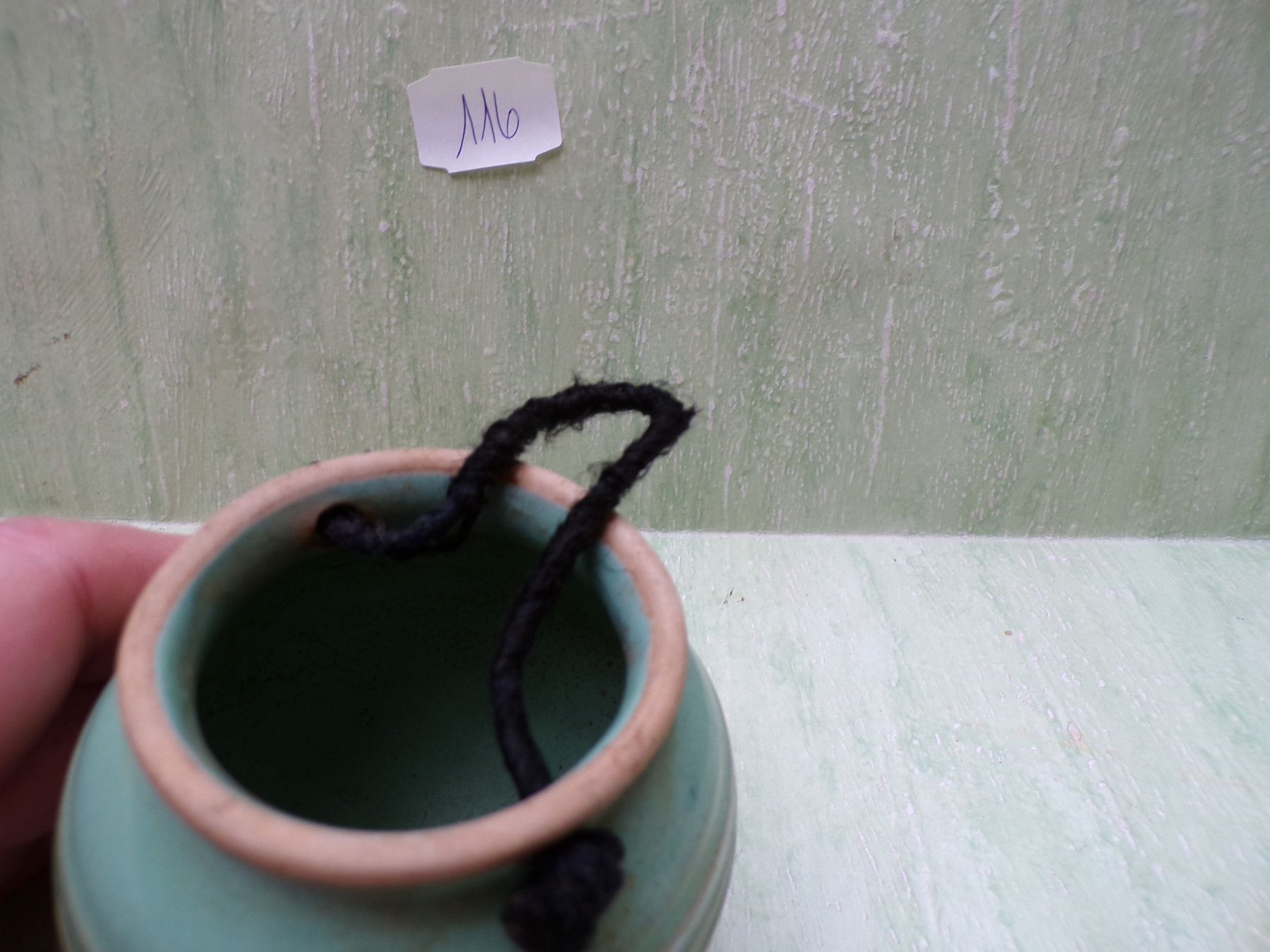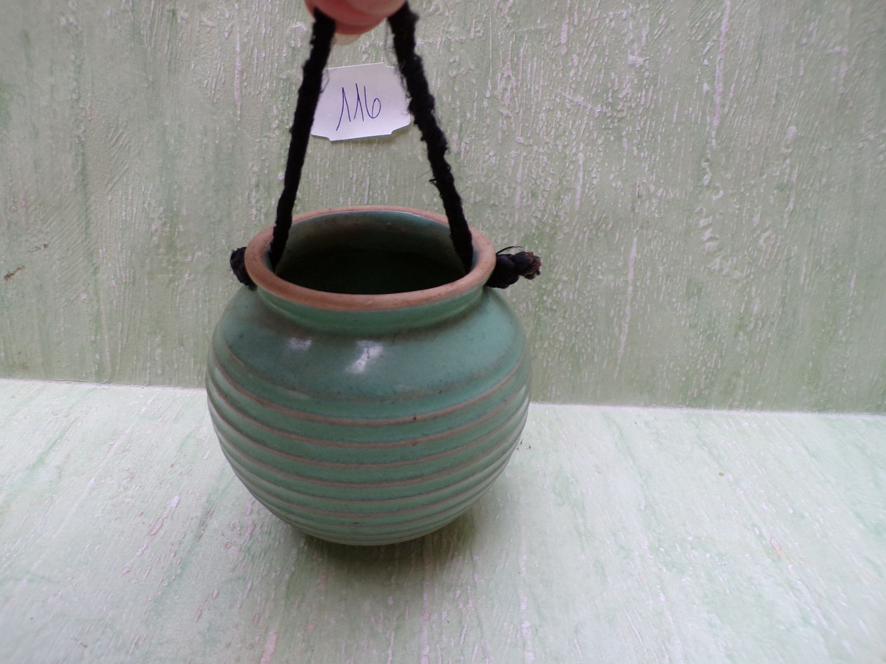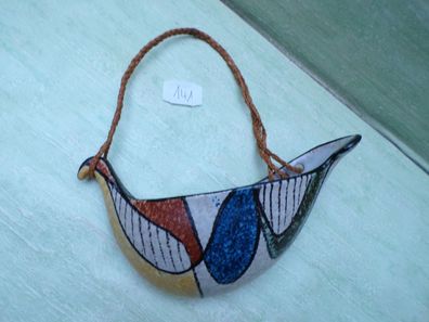 Keramik Wandvase hangemalt signiert Bastband bunt Nr 806/1 ca 9x18cm Art Deco