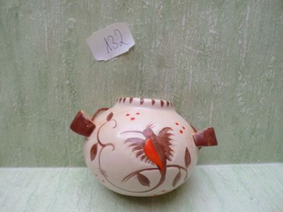 Keramik Wandvase Mini Vogelmotiv creme-braun-rot mit Henkel ca 6,5cm